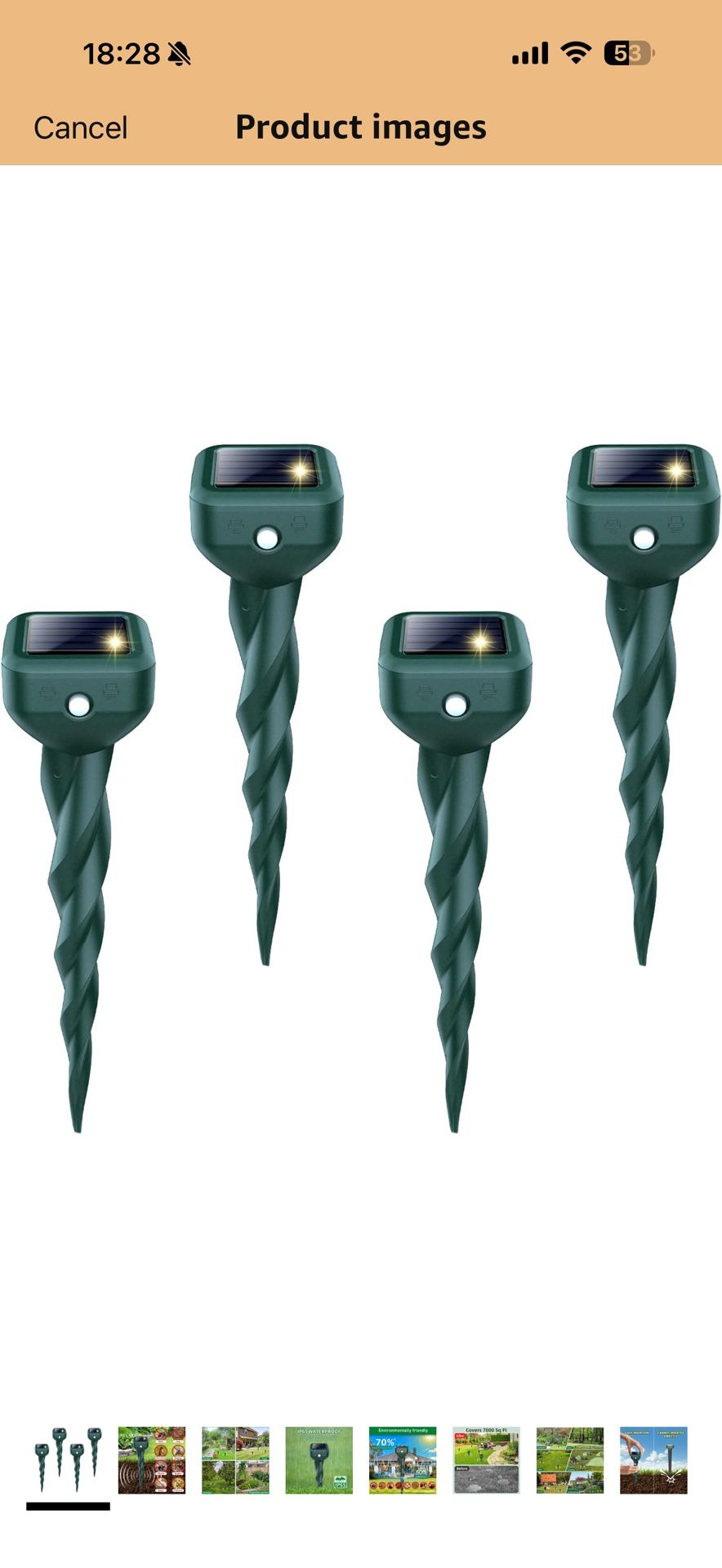 Mole Repellent Solar Powered, 4 Pack Snake & Skunk Repellent for Yard, IP 65 Waterproof Ultrasonic Deterrent Stakes, Get Rid for Rabbit, Gopher, Vole,
