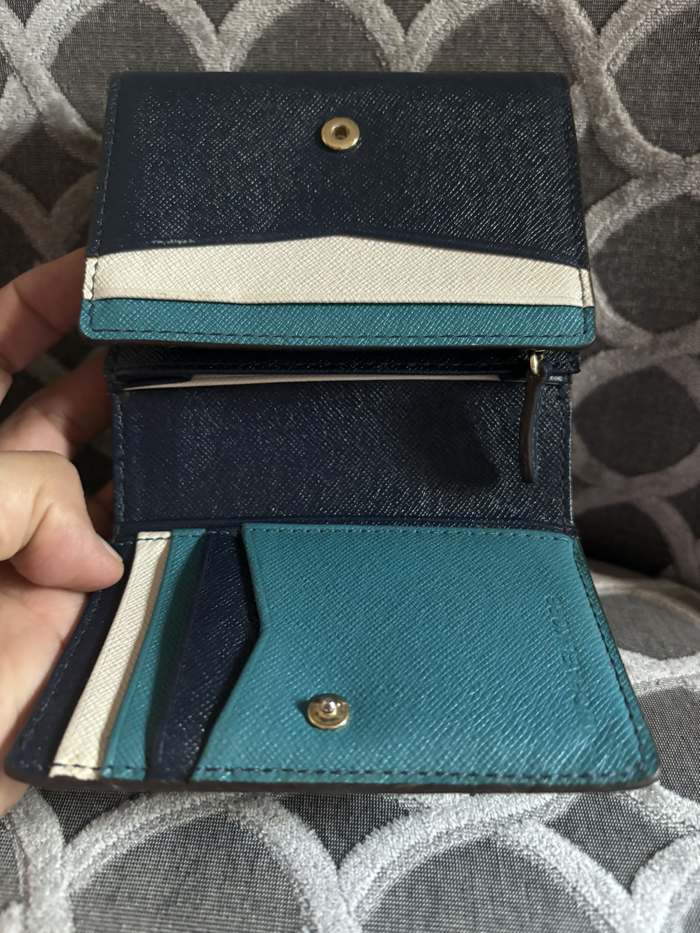 Michael Kors Leather Navy Blue Teal Wallet Trifold Credit Card Snap Closure Zip . Pickup only.