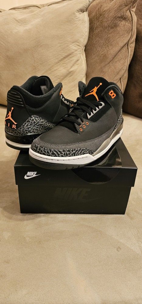 2023 Jordan Retro 3 Fear Pack Colorway: Night Stadium/Total Orange-Black-Flat Pewter-Neutral Grey Sizes: 10.5 Condition: VVNDS, Worn Once Release Date: 11/25/23 100% Authentic Guaranteed! Condition: 10/10 Replacement Box I have shoes in hand Meet Up Ready to ship!