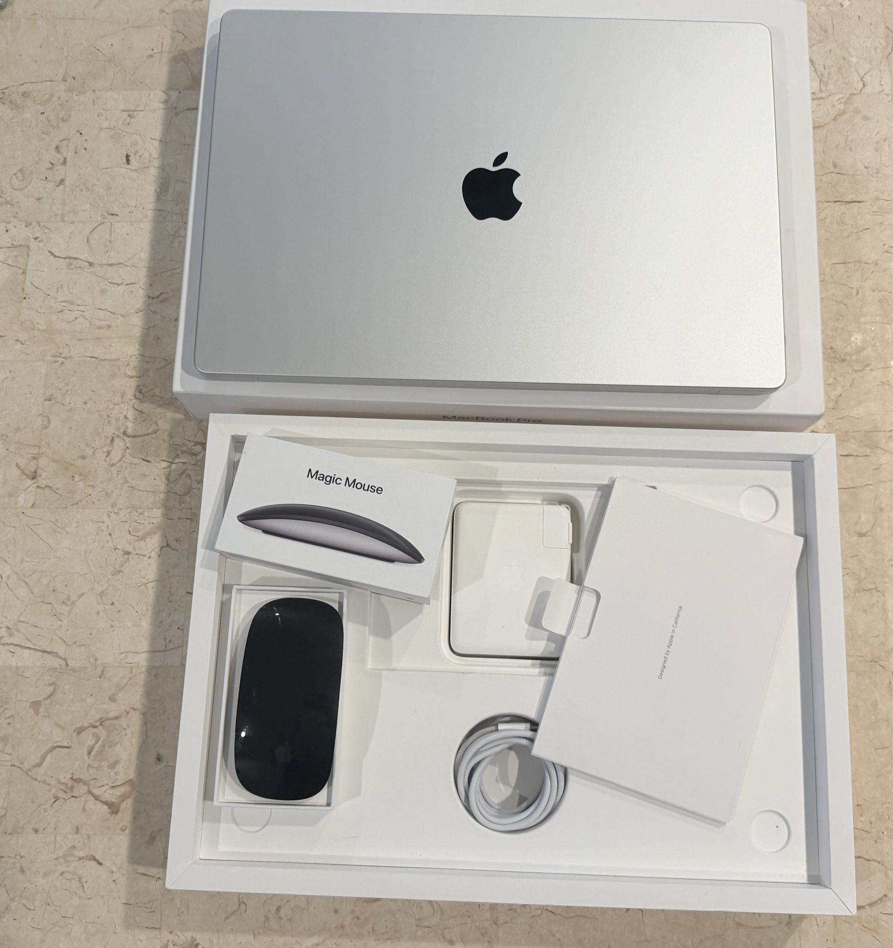 Silver 16-inch “MacBook Pro”ordered built from Apple Store all apple paperwork matches serial number and myself in September 2025. Turned on for was updates and software installation and unused. Serious inquiries only • 16-inch Liquid Retina DR display' • Nano-texture display • 140W USB-C Power Adapter • Backlit Magic Keyboard with Touch ID - US English • Apple M4 Pro chip with 14-core CPU, 20-core GPU, 16-core Neural Engine • Three Thunderbolt 5 ports, HDMI port, SDXC card slot, headphone jack, MagSafe 3 port • 48GB unified memory • 1TB SSD storage Software: • Photos, iMovie, GarageBand • Pages, Numbers, Keynote • macOS • Pro Apps Bundle for Education-five professional creative apps New Apple wireless mouse