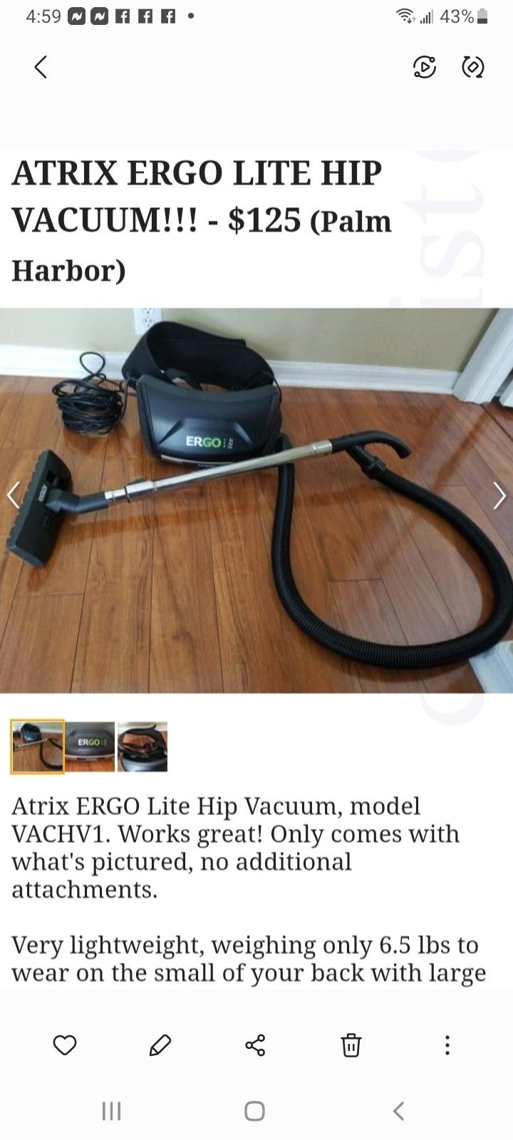 Very lite hip vacuum. Works great I just don't need it anymore