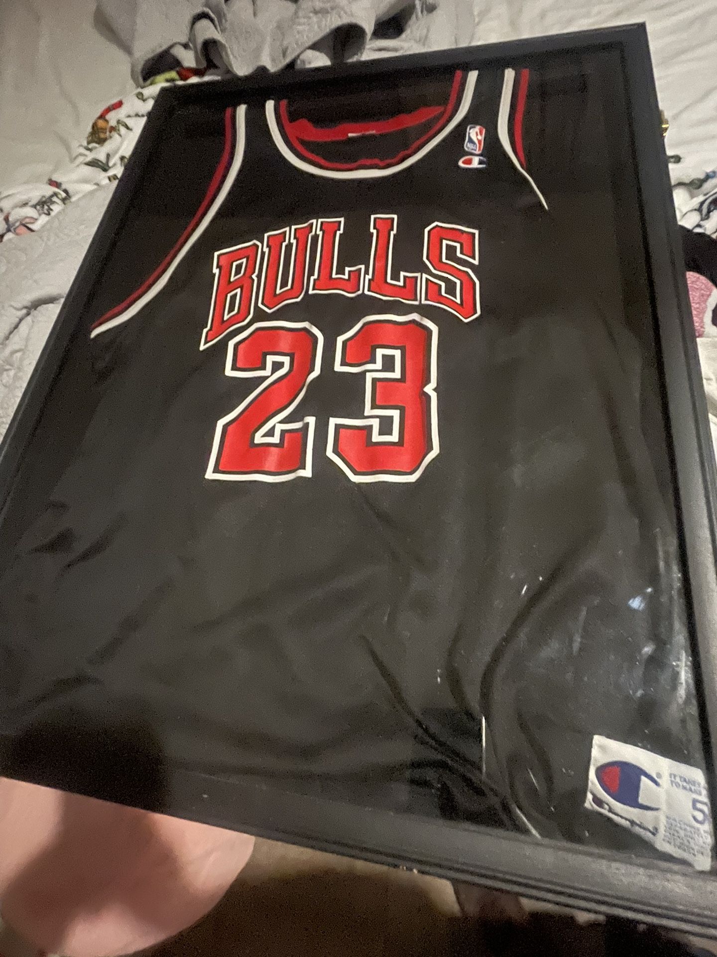 Jersey in display case selling for sale 50 Not sure on the size looks like a XL