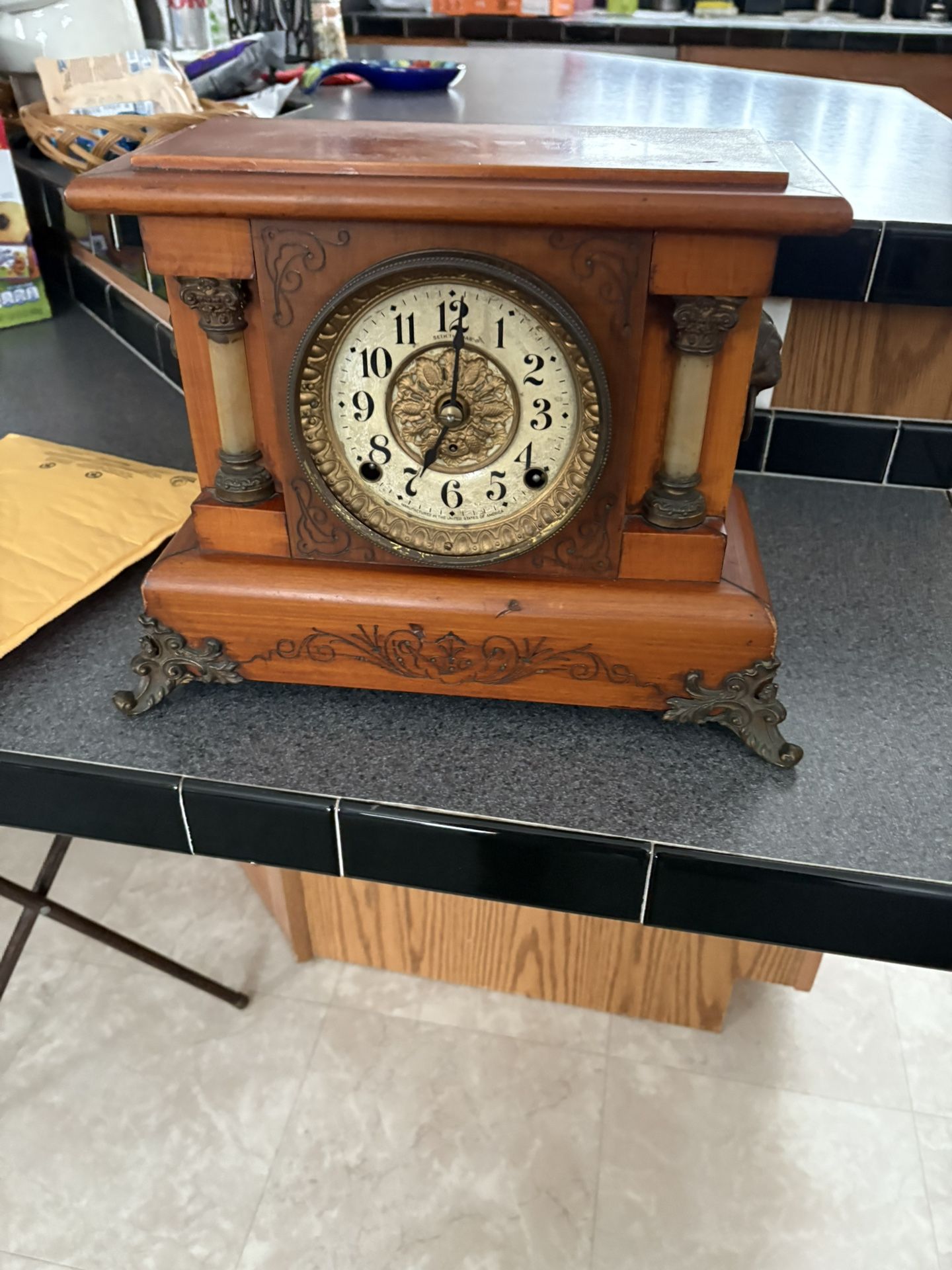 Antique clock . Seth Thomas,1902. Works good. Just missing the front glass. Have the key to wind.