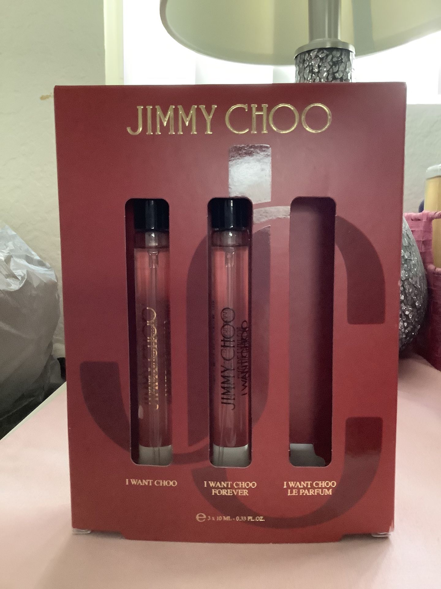 Jimmy Choo I Want Choo and I Want Choo Forever travel sprays. Le Parfum is NOT included. Each were sprayed once to test, but otherwise unused and with box.