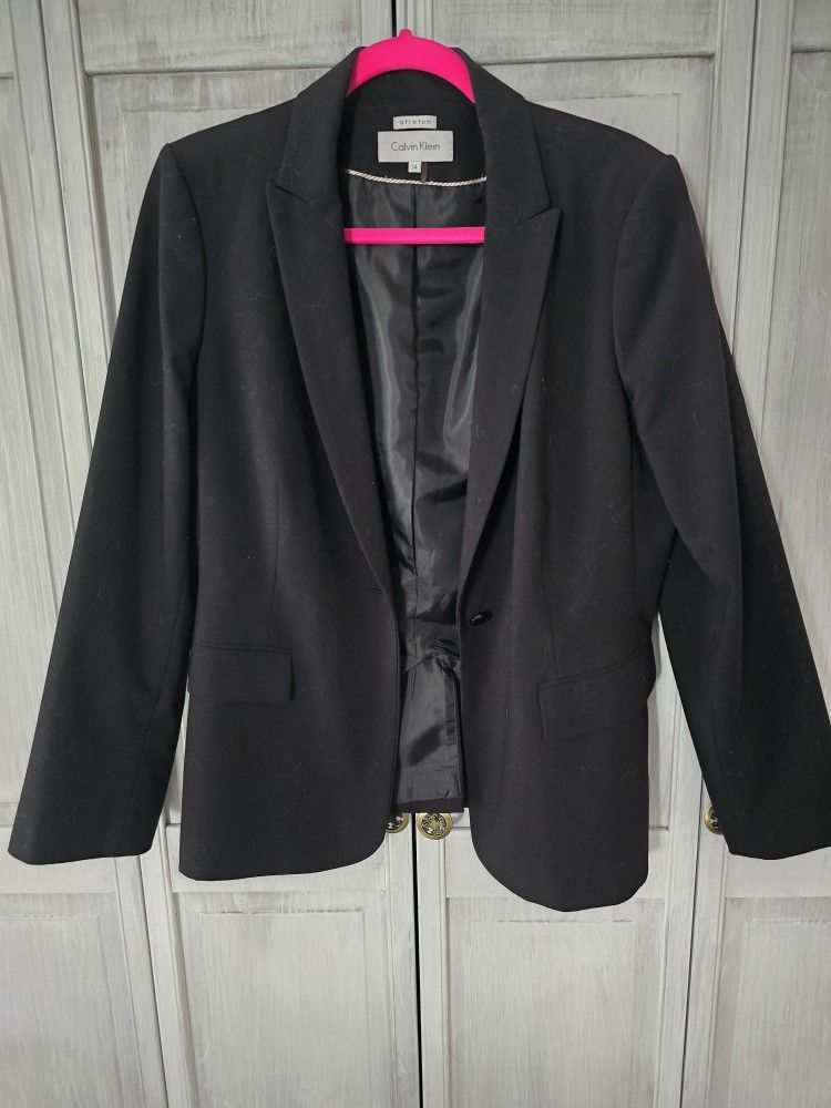 **Pickup in Belfair, Grapeview, Shelton, or near Olympia Mall** Calvin Klein Blazer Women's Size 14 Black with Black Lining Stretch Fit Single Button Front Close