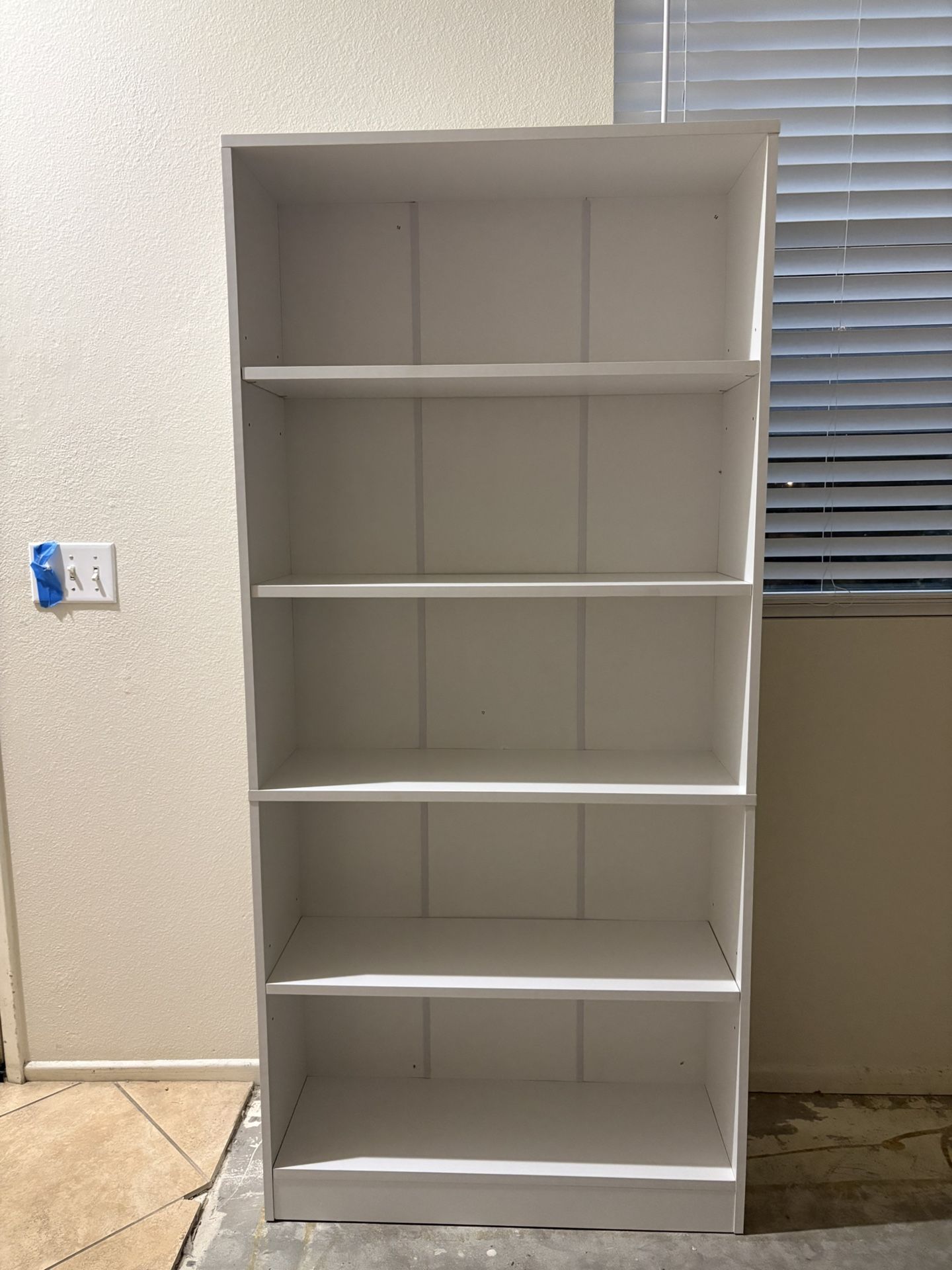 Tall 5 Shelf Bookcase in White, Vertical Storage and Display Bookshelf for Home Office or Living Room Organization 67 3/8 H x 31 1/8 W x 10 5/16 D