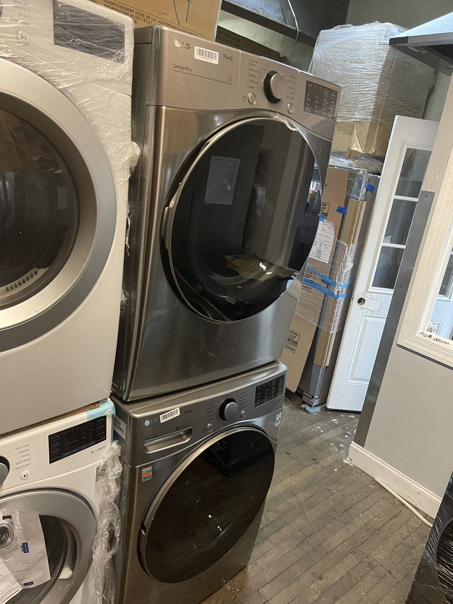 27 in. 4.5 cu. ft.Ultra Large Capacity White Front Load Washer with Steam and Wi-Fi Connectivity by LG Electronics 7.4 cu. ft. Ultra Large Graphite Steel Smart Electric Vented Dryer with Sensor Dry & Wi-Fi Enabled by LG Electronics New never used