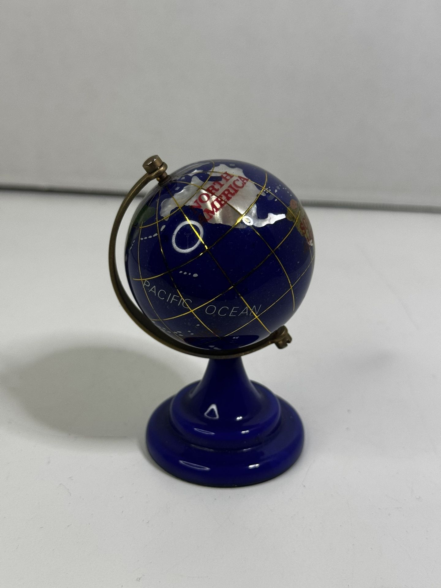 Vintage Semi Precious Gemstone World Spinning Globe Blue Base 3” Tall RARE You will receive the exact item shown in photos. Please view all photos for exact condition of item. Message me with many questions. Pick up only.