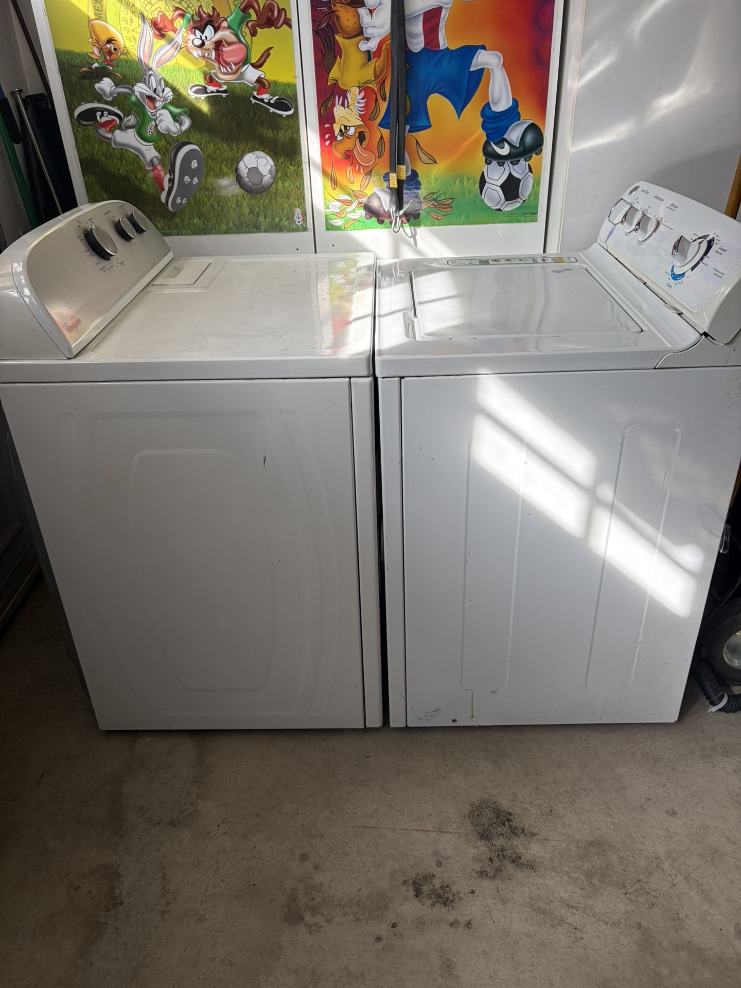 Washer & Dryer Set β $150 OBO GE Top Load Washer + Whirlpool Dryer π Pick up only π° $125 or best offer πΉ Washer (GE) β’ Top load β’ Turns on β’ Does NOT spin (may need repair) β’ Good for someone handy or for parts πΉ Dryer (Whirlpool) β’ Works great β’ Heats and dries properly β’ Clean and ready to use Selling as a set. Great deal if you can fix the washer or just need a working dryer. Message me if interested!