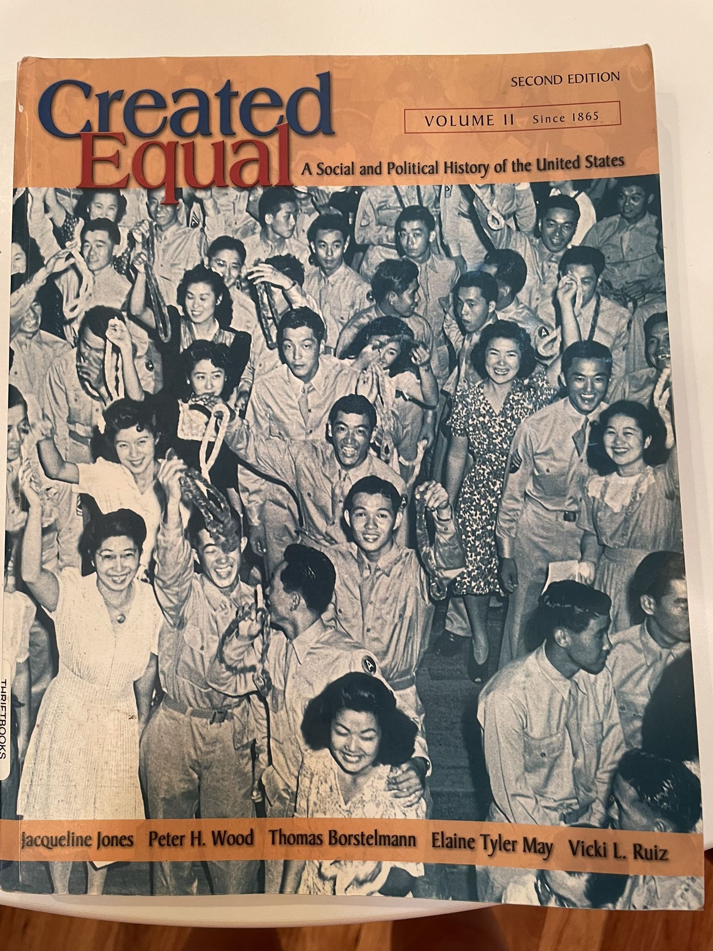 Created Equal: A Social and Political History of the United States, Volume II (from 1865) (2nd Edition) by Jones, Wood, Borstelmann, May, and Ruiz Used for Collin College HIST 1302. Cash Only. ISBN-10 : 03213, 17254 Good Condition. Paperback. Smoke-free home. Meeting Location: Custer and Renner in Richardson.