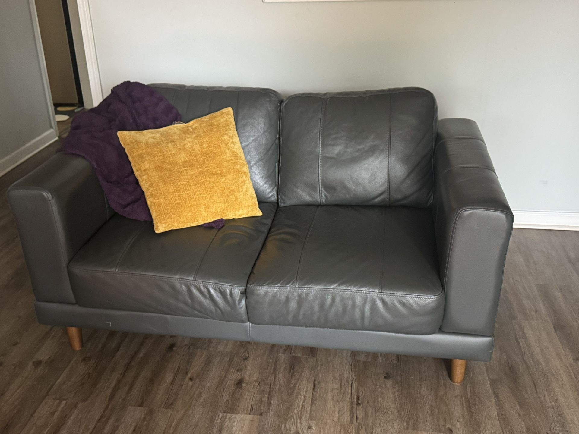 Like-New charcoal grey leather love seat that doesn’t match my living room vision since I want a different color couch I’m letting this go. $350 or best offer for pick up.