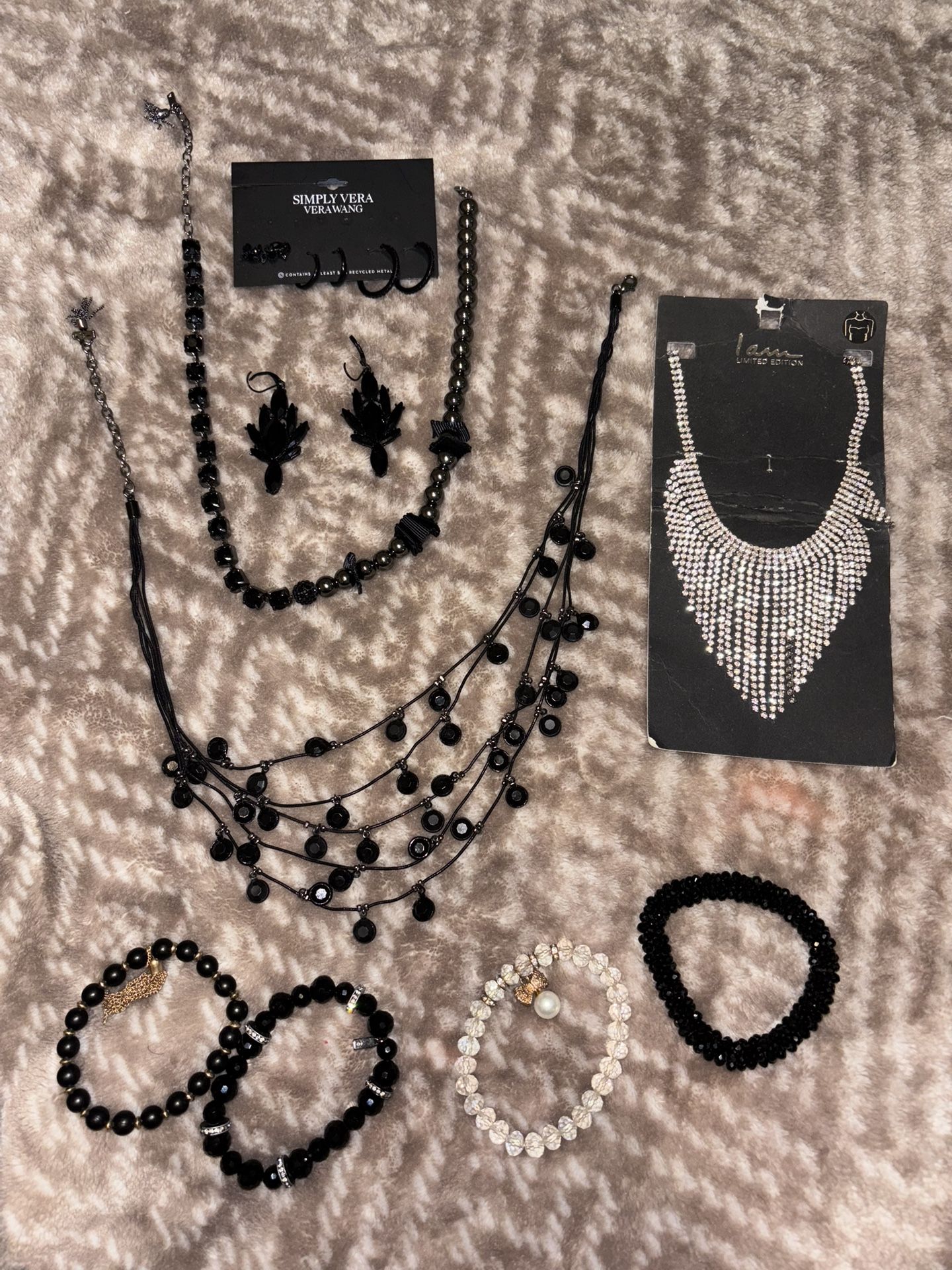 Jewlrey/Costume/Vera Wang/4 necklaces/4 bracelets/1 set earring/pack of earrings $5 each/all for $25 Some Brand new, some worn once. See pics/video $25 obo for all PICK UP 19082 or 19151!!!!!!! SEE SELLER PAGE FOR A LOT OF ITEMS FOR SALE: electronics, furniture, kids/baby/pet items, home decor, women’s clothing, shoes, etc. FB SELLER PAGE OVER 225 reviews! https://offerup.co/faYXKzQFnY?$deeplink_path=/redirect/b