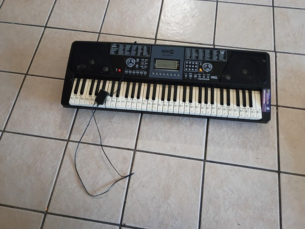 Electric keyboard hasn't been used it had little legs to stand on and I had something to hold a book on but they broke so it's just the main part