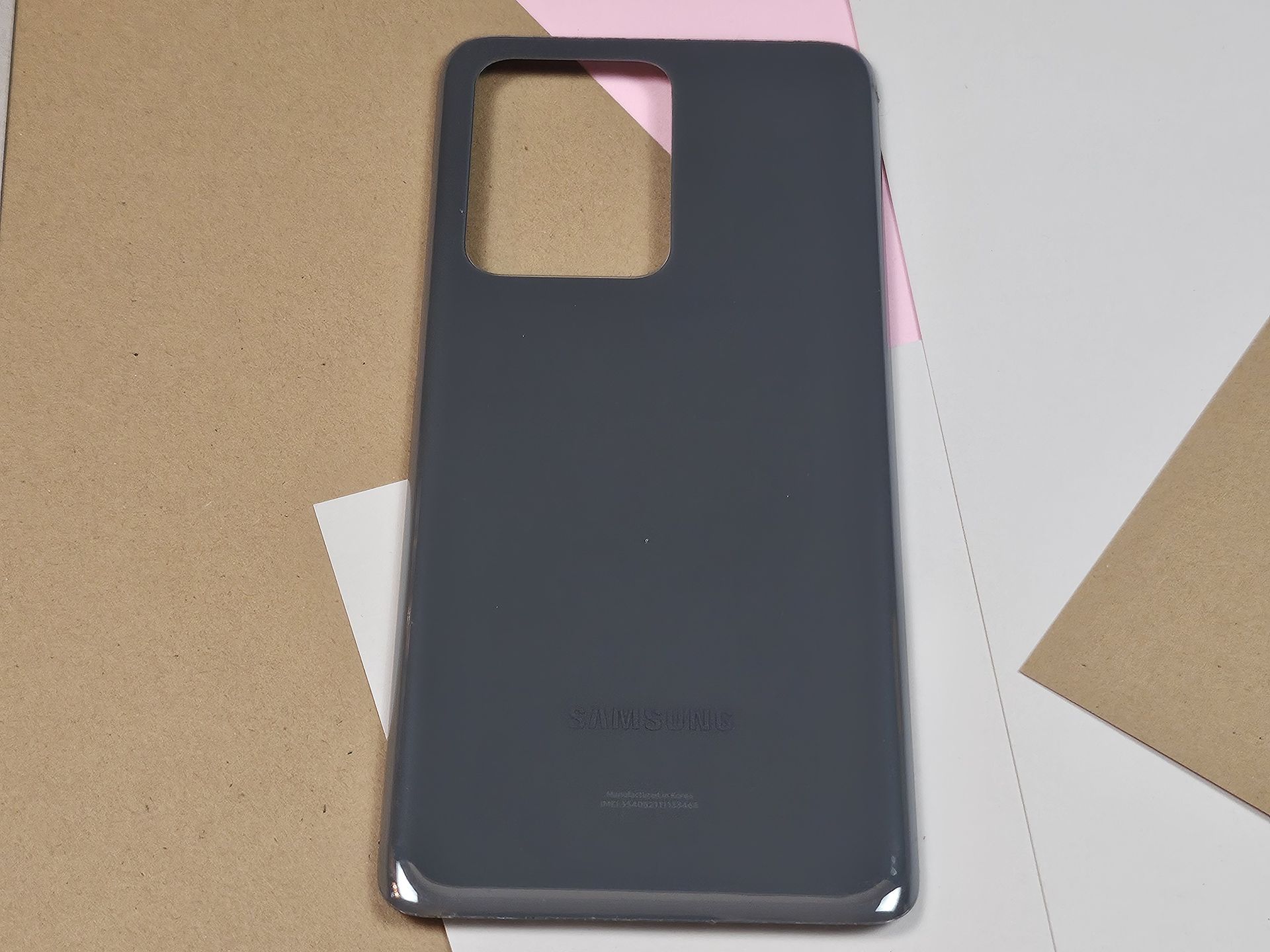Genuine OEM Samsung Galaxy S22 Ultra back glass / rear housing removed from an original device. This is an authentic Samsung part, not aftermarket. Color appears Gray / Graphite (see photos). Glass is intact with no cracks, but shows light cosmetic wear, scuffs, and adhesive residue from removal. Camera cutout frame included as shown. Ideal replacement if your back glass is cracked or damaged. Please verify compatibility with your specific S22 Ultra model before purchase. Sold exactly as pictured.