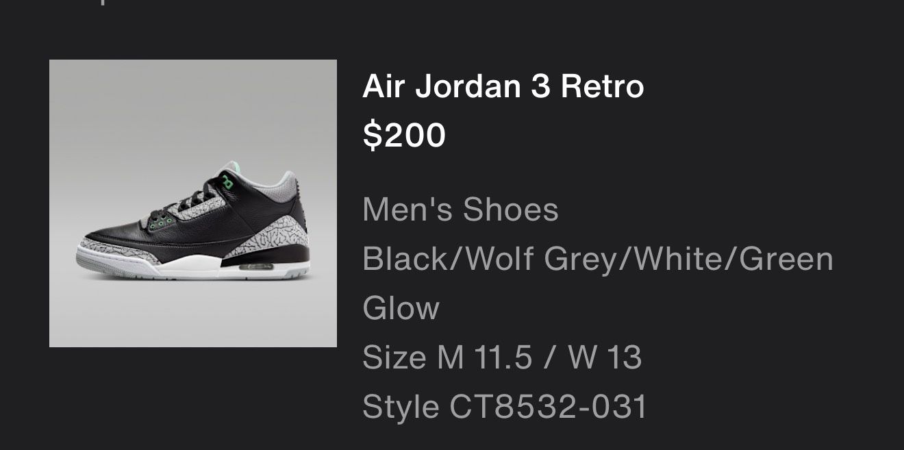 Air Jordan Retro 3 Size 11.5