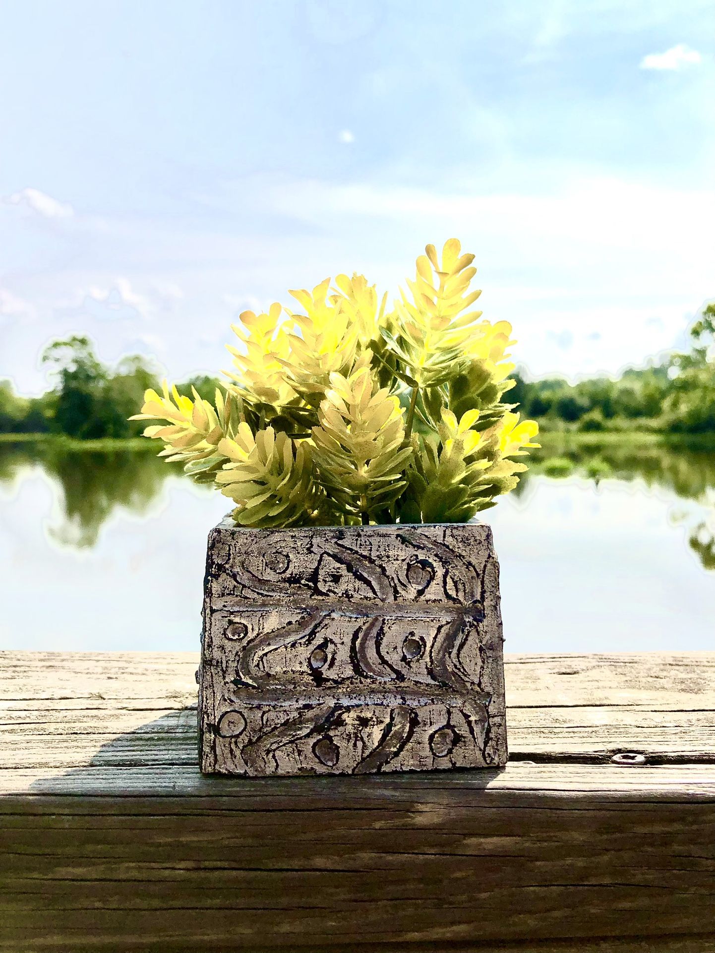 Small square pot, crafted from scratch, unique design. Dimensions 2.4”H x 4.4”W 13.2oz (Plant is not included)
