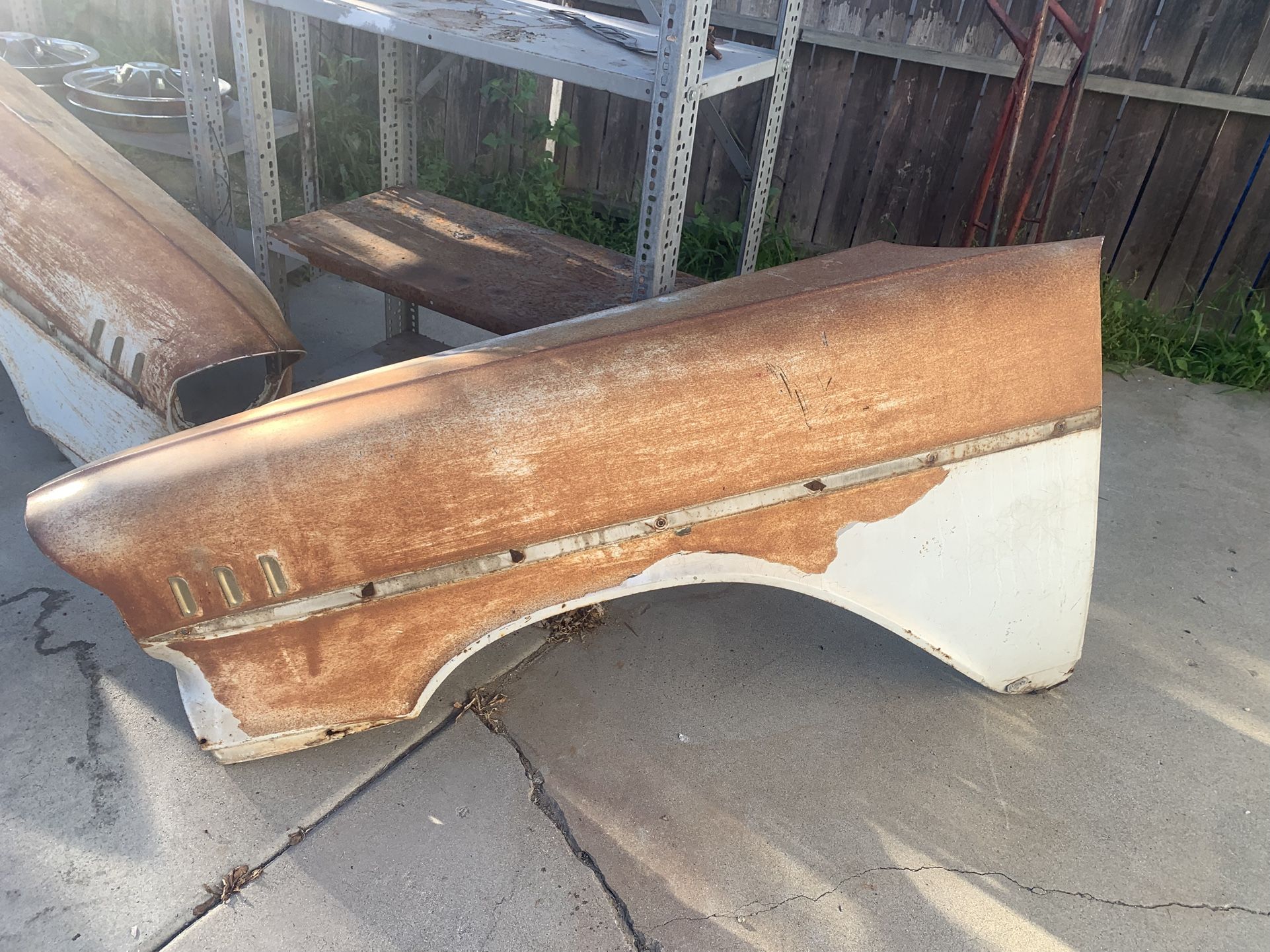 Up for sale 1957 belair fenders and fender wells …. Not perfect they do have some rust for for a patina car …
