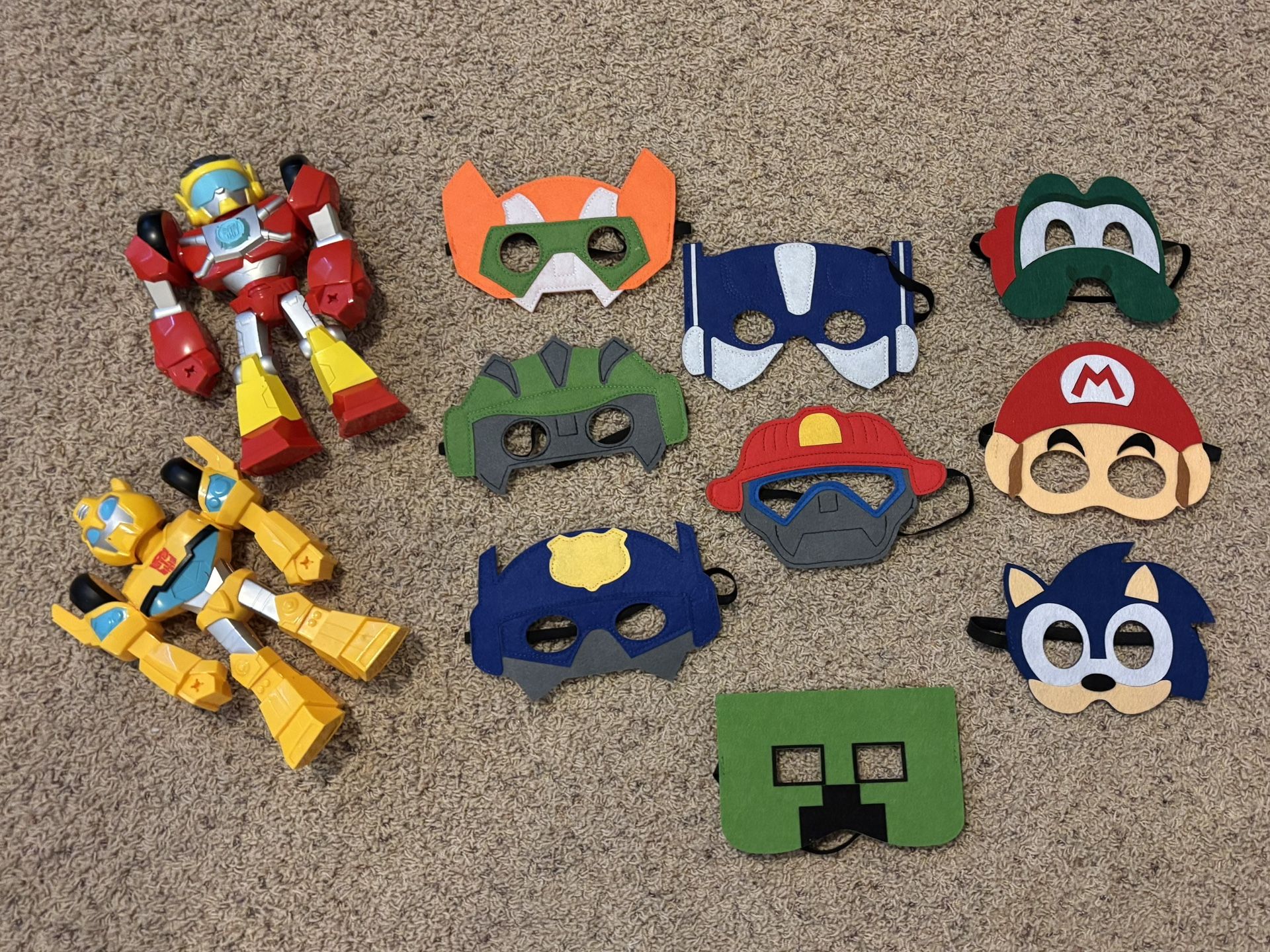 Assorted character play masks and rescue bot toys. Local p/u East Vancouver. E-payment accepted, porch pick up available.