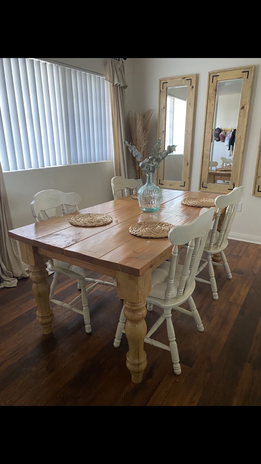 Dining table with 4 chairs, desk and coffee table. All with matching legs Dining table w 4 chairs ($350) 72 inches Lx37inches W, 30 inches H ……SOLD Desk ($250) Coffee table($120) Located in Camp Pendleton near the naval hospital