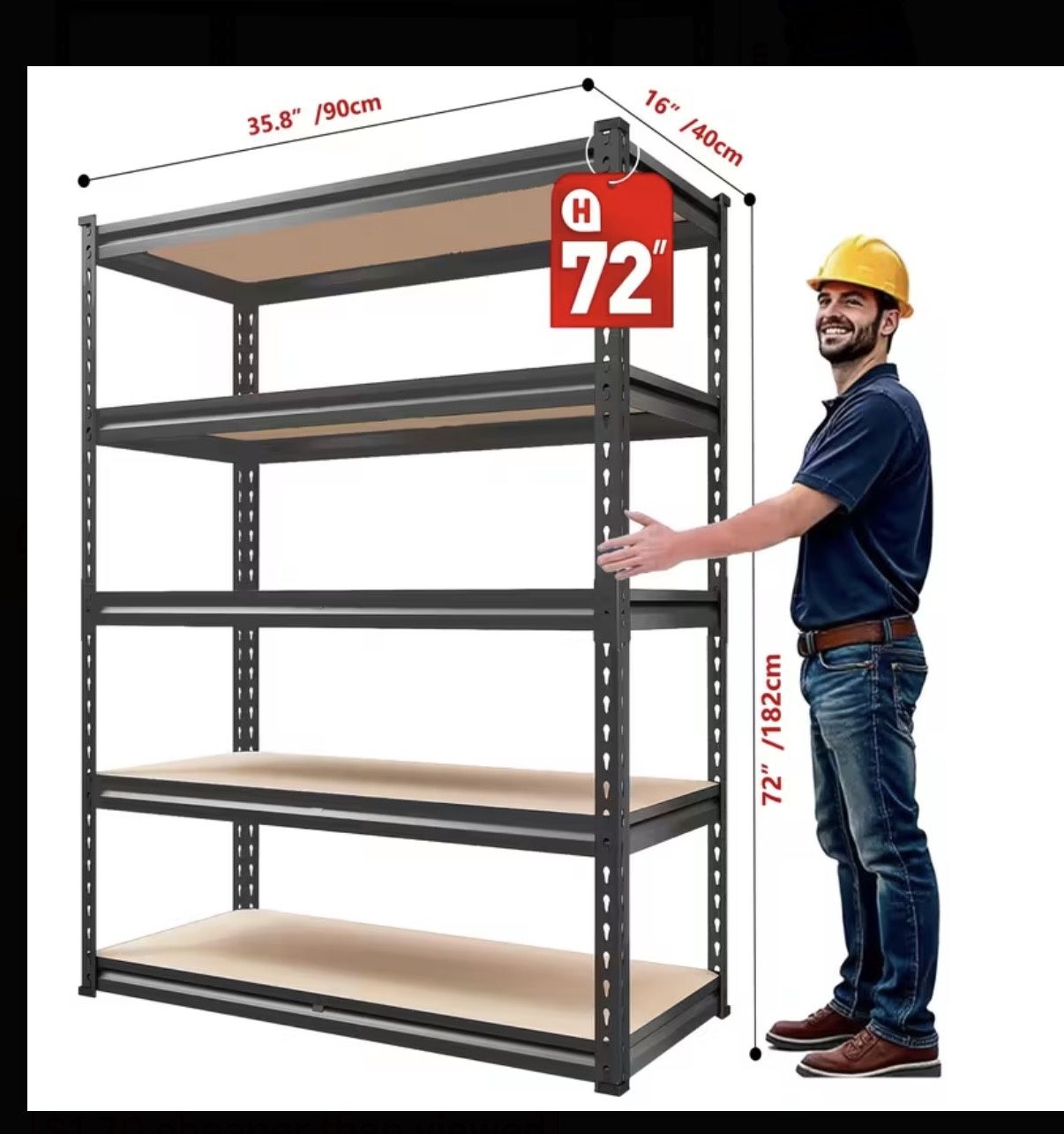 5-Tier Adjustable Metal Shelving Unit , 72" H X 36” W X 16" D, Modular Design For Garage ,Kitchen etc