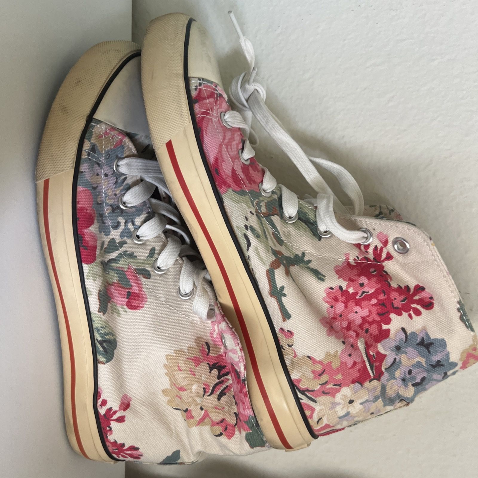 Used no box - see pictures for condition The Cath Kidston Women Beige Floral Sneakers in EU size 41 and US size 10 are a stylish and versatile choice for women. Featuring a lace-up closure and made with canvas upper material, these sneakers are comfortable for all-day wear. The floral pattern in a beige color adds a feminine touch, while the rubber outsole provides durability and support. Perfect for any season, these sneakers are a fashionable choice for casual outings or workouts.