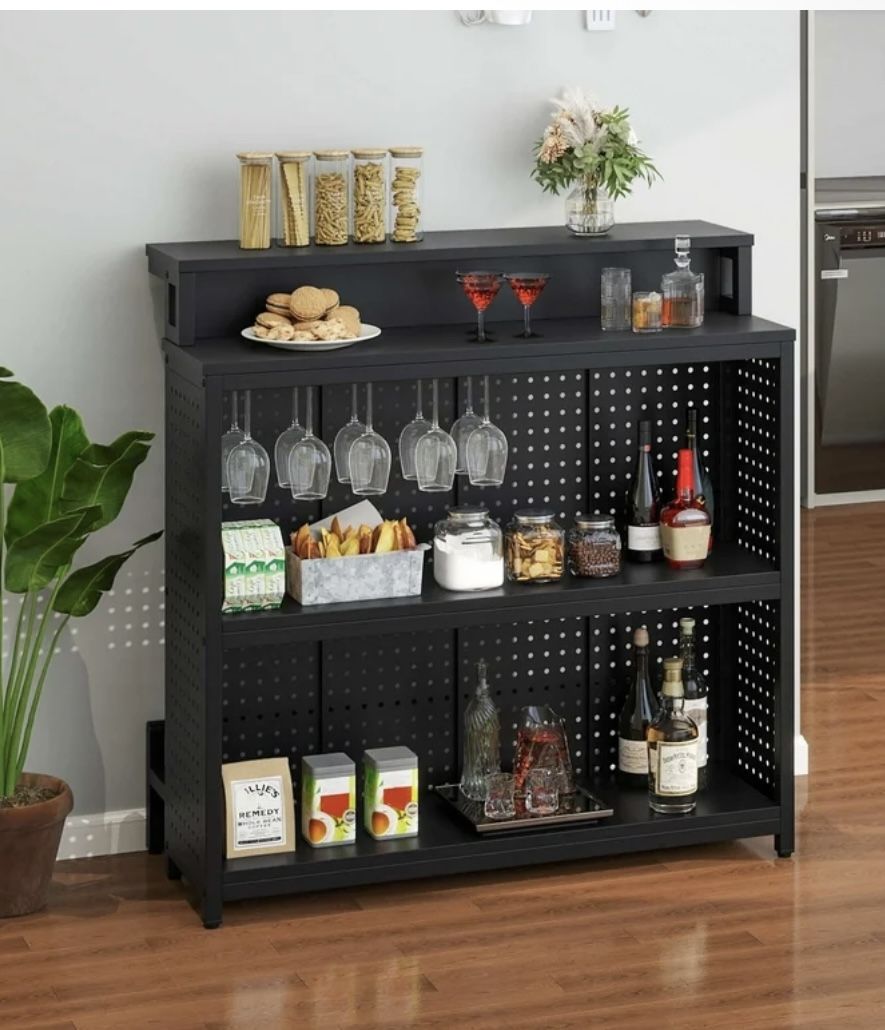 4 Tier Home Bar Unit, 43" Liquor Bar Table with Adjustable RGB LED Color Lights, Mini Bar Cabinet