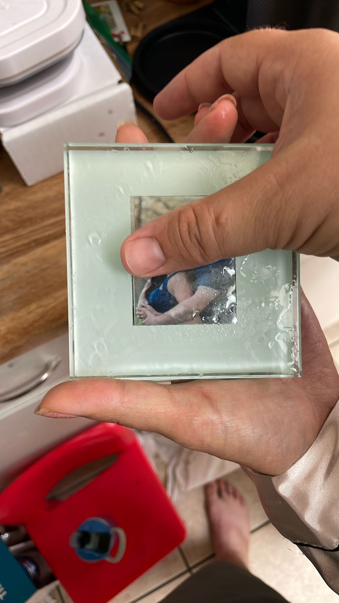 Coasters with slots for wallet sized photos. Total of 8 for $2