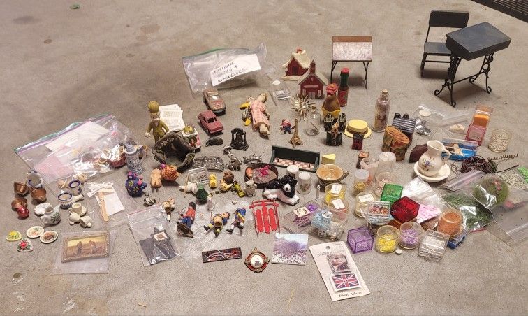 Lot Of Vtg Miniature Crafting Furniture & Decor Variety Metal, Wood, Porcelain