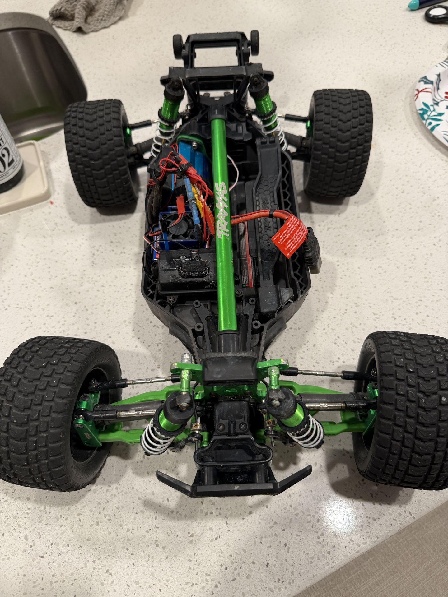 Includes a 7000mAh LiPo battery, charger, chasis cover, lights kit, and its controller, which can connect to a smartphone. Traxxas Rustler Ultimate 4x4 VXL for sale. Only 2 weeks of use and in perfect mechanical condition. Everything works exactly as it should. The body has some light scratches from normal use, nothing broken or cracked. Very fast, powerful, and fun RC car. Well maintained and ready to run.