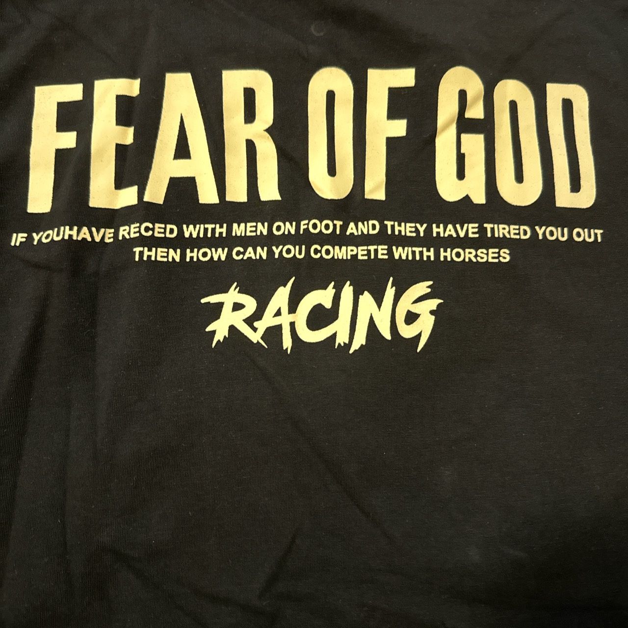 Size XL Brand New- The Essentials Fear of God T-shirt is the epitome of minimalist luxury and streetwear sophistication. Crafted with meticulous attention to detail, this shirt seamlessly combines style and comfort. The shirt features a clean, timeless design with the iconic Fear of God Racing logo subtly printed on back of shirt adding a touch of understated elegance. Its soft and breathable fabric ensures all-day comfort, making it a versatile wardrobe staple that can be dressed up or down effortlessly. Elevate your fashion game with this classic piece that effortlessly blends contemporary aesthetics with comfort, giving you the confidence to conquer any setting with ease. The Fear of God Essentials T-shirt is not just a garment; it's a statement of style and a symbol of urban fashion.