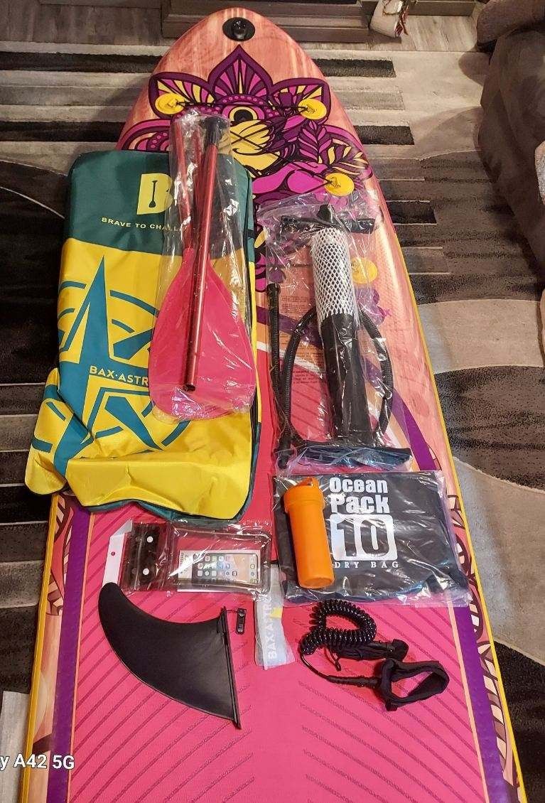 Brand NEW PINK INFLATABLE SUP W PADDLE FIN PUMP LEASH BACKPACK BNIB NEVER USED