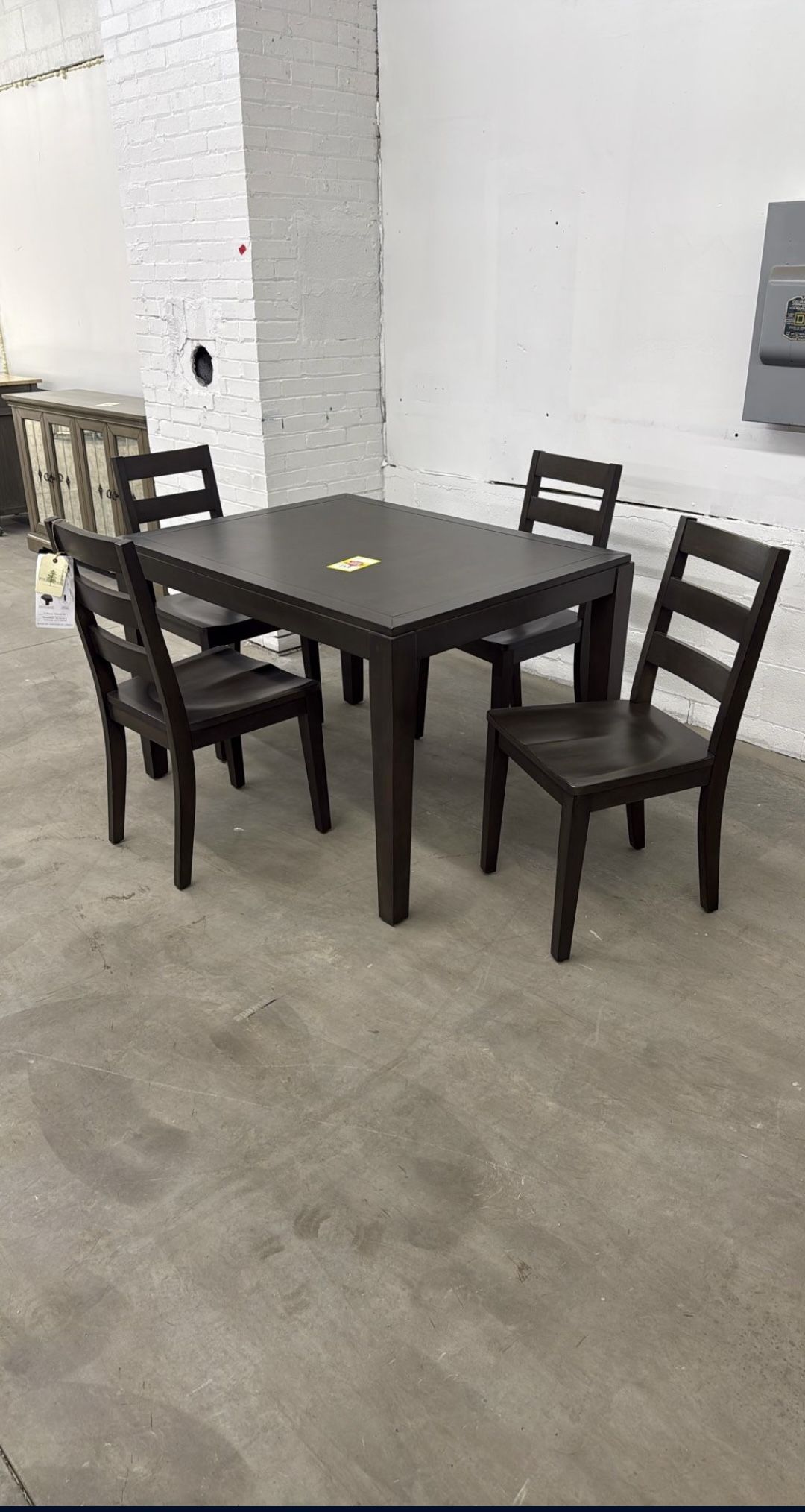 Rectangle Dining set/ solid wood chairs. Modern style, Grayis- Walnut color Regular price, Around $299 Dimensions: 46.5" inches L 35.5" inches W 30.5" inches H Please Read Below, We are willing to negotiate all our items and prices, No Returns or Refunds, Message me for availability or more information, and be ready to pick up as soon as you get confirmation a item is still available. Items are first come first serve, as we host furniture sales frequently!!