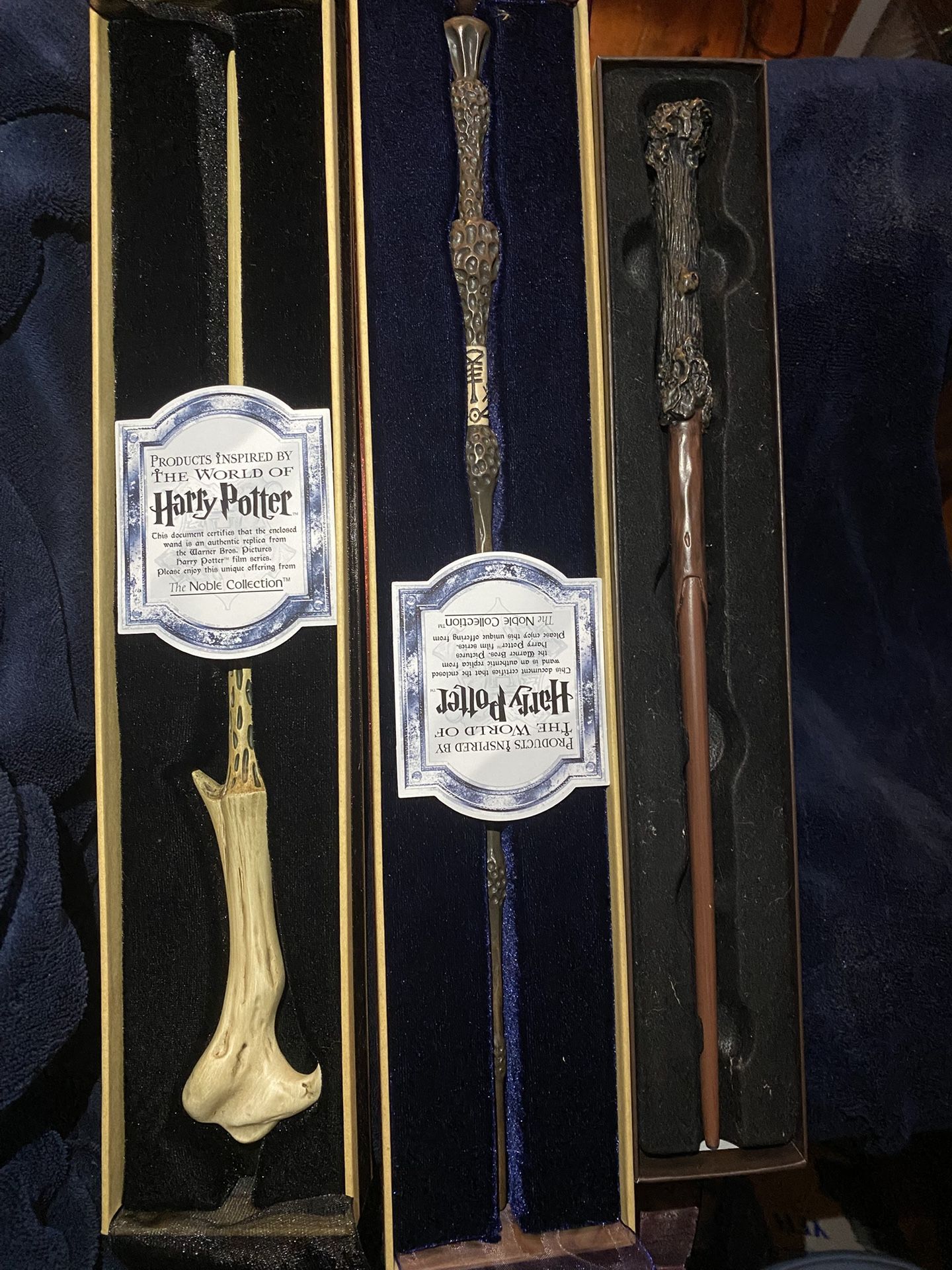 Great looking props are identical to ones from movies. Harry potters wand is from universal studios and other 2 are from noble collections.