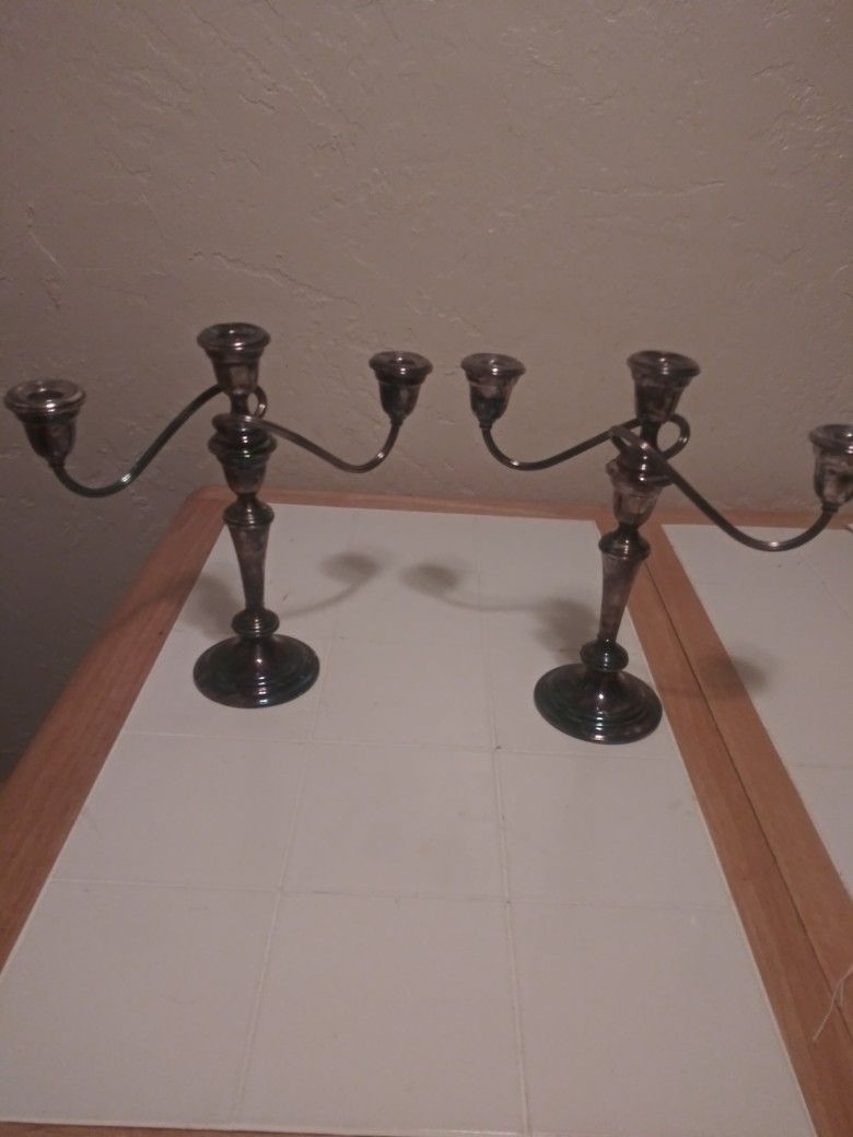 A pair of great condition GORHAM SILVERPLATE twisted candle holders. 12 inches in height. $50 for the pair.bCan deliver locally.