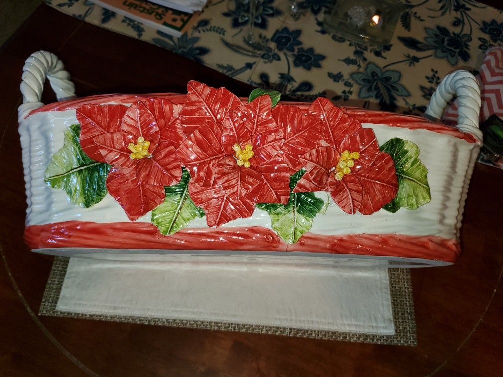 12" Christmas Poinsettia Ceramic Basket Style Baking Dish - $30 obo. Handmade in Italy. Approximately 8" wide by 5" deep. 35th Ave and Bell Rd. Cash only.