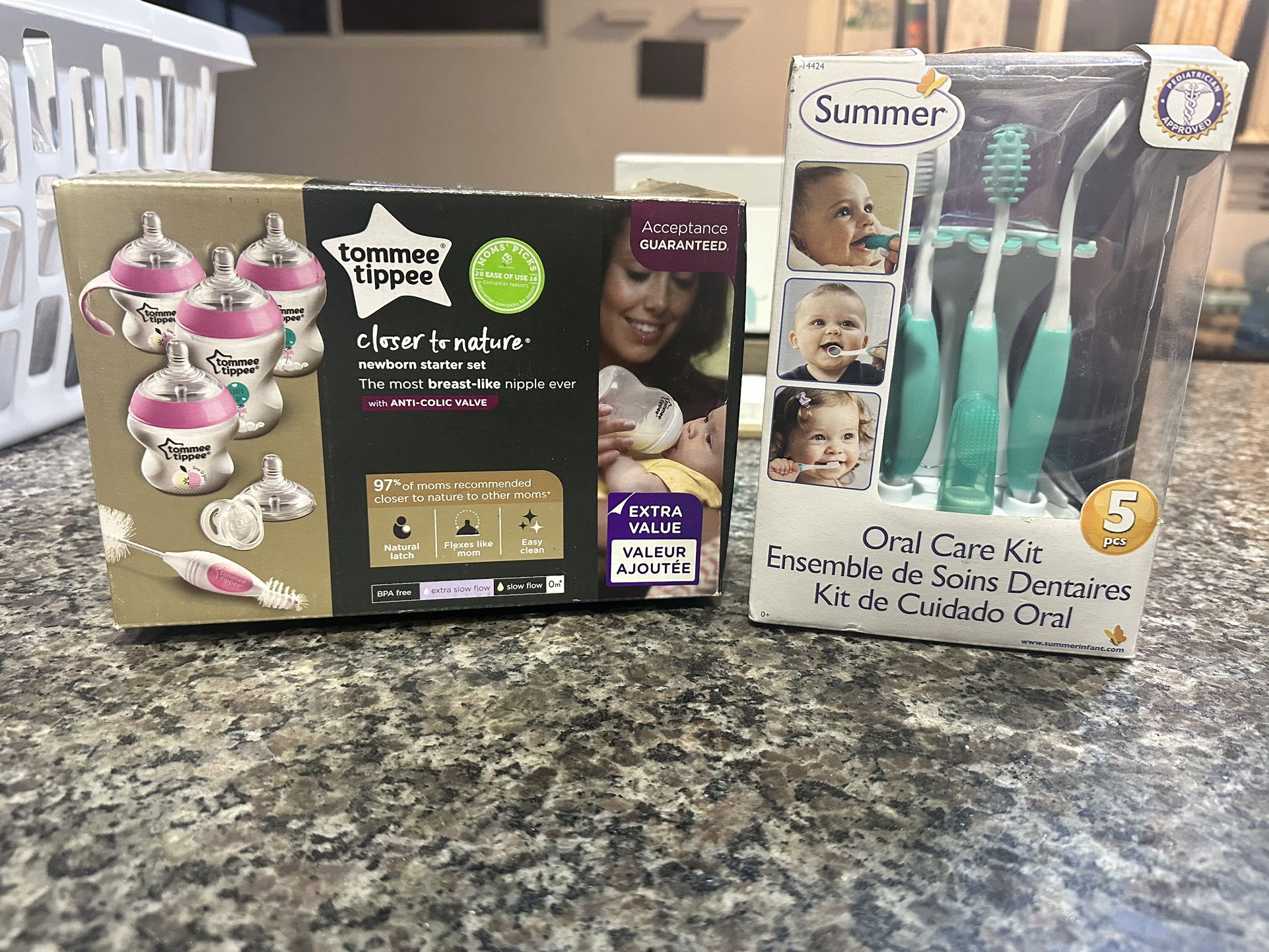 Brand new sealed, Tommy tippy closer to nature newborn starter set. Summer oral care kit also brand new in the box. See pictures