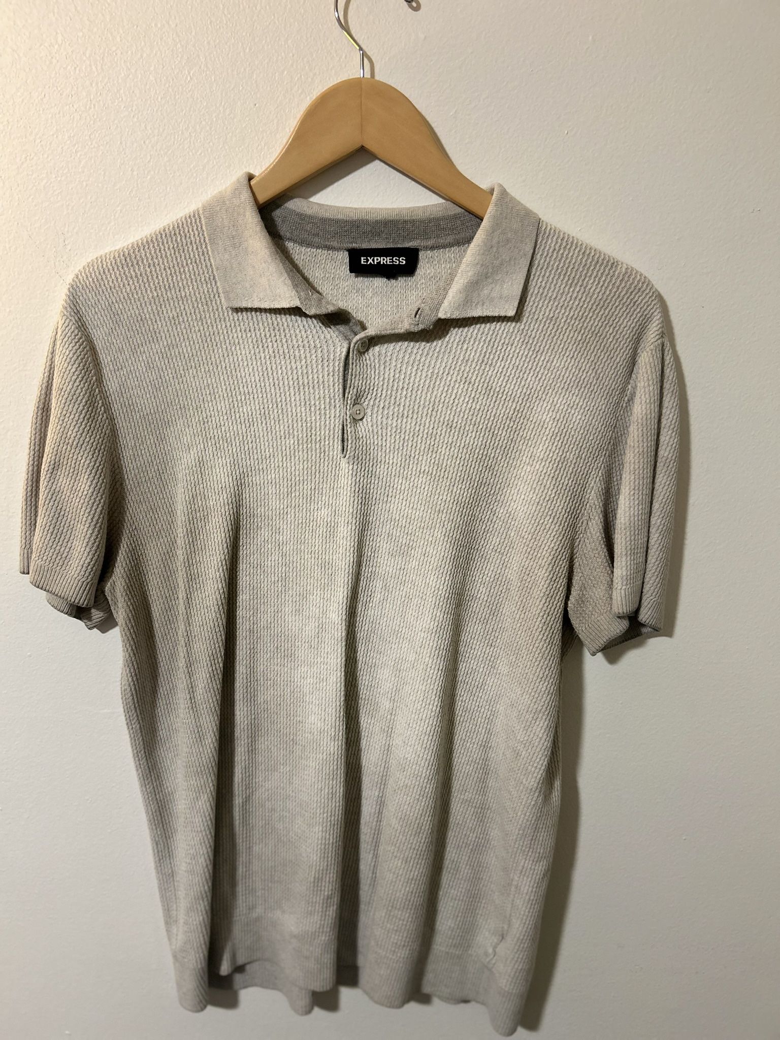 Express open cable knit cotton short sleeve sweater polo. Really comfortable !