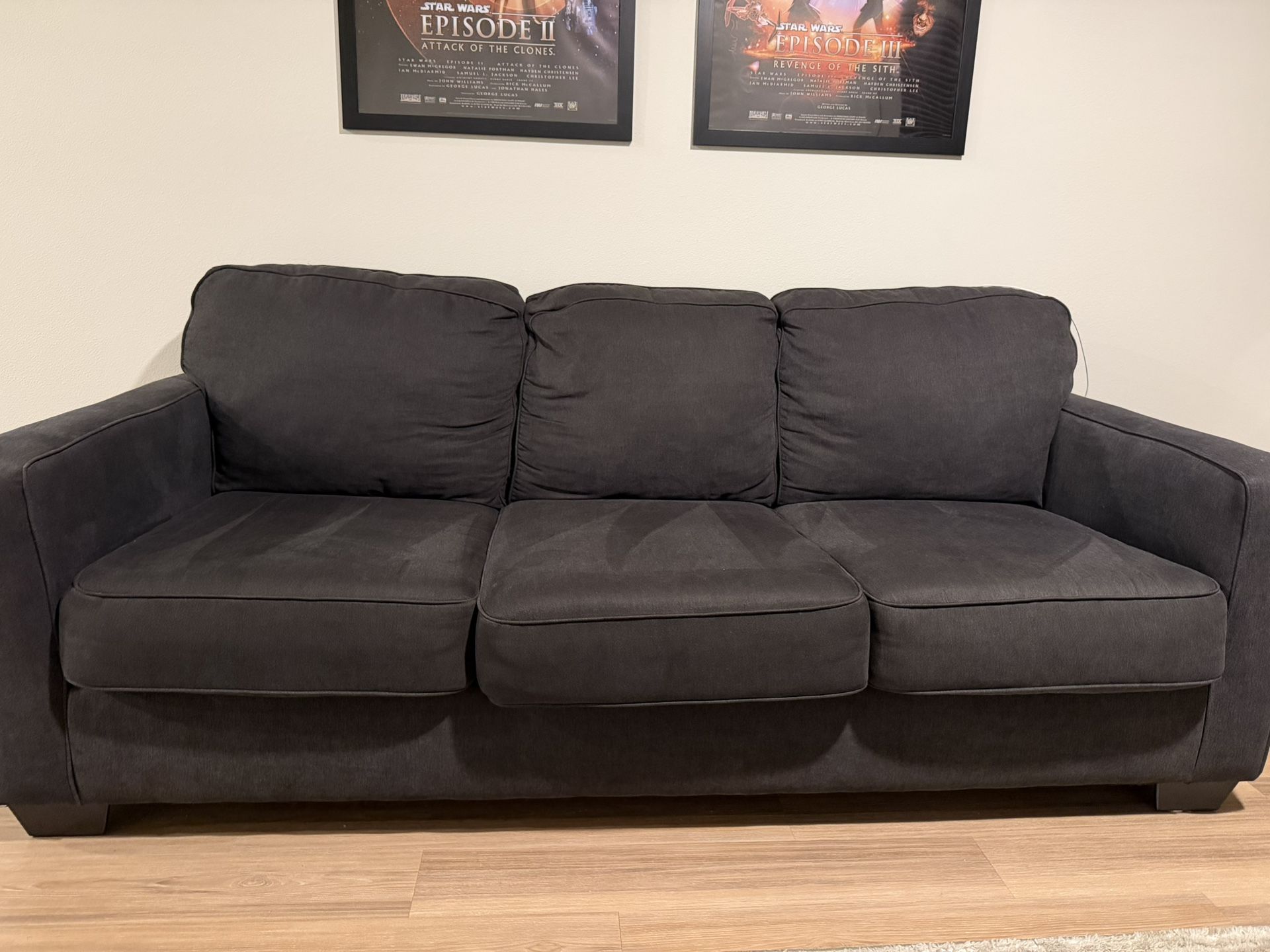 Grey couch -3 cushion couch - 25 inches tall x 76 inches length x 38 inches width -no pets, no stains, had for a year. Pickup only! willing to negotiate price!
