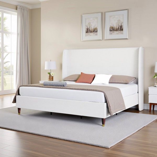 *Brand New* Wade Logan Belo Upholstered Platform Bed, King, White