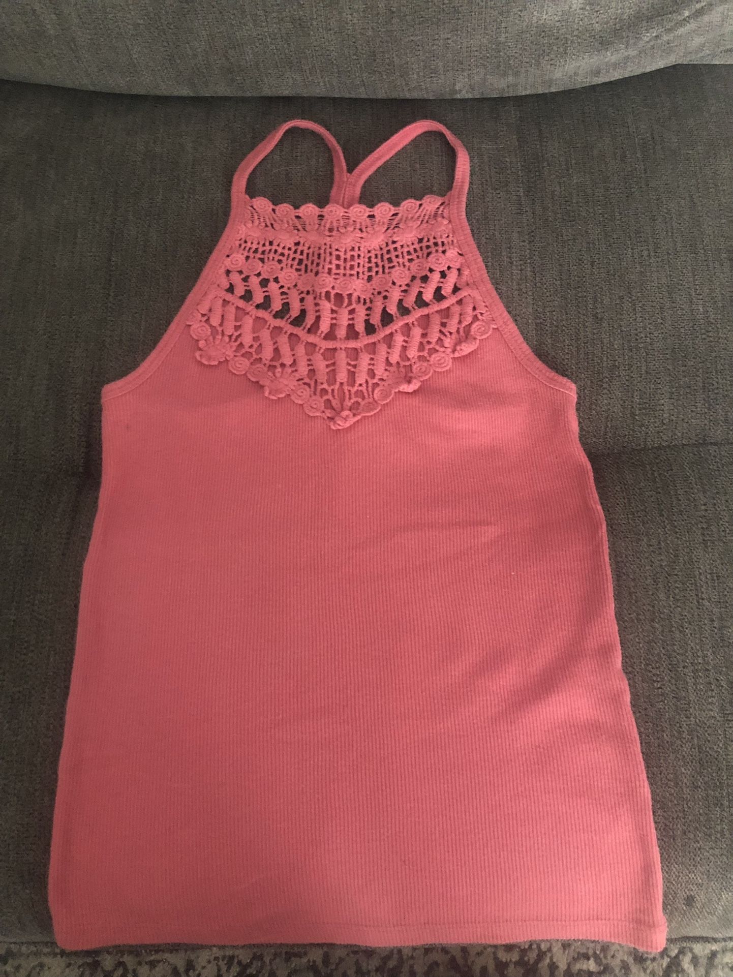 Aeropostale tank size Medium. Color- Mauve. Ribbed tank with lace details. Gently worn. Porch pick-up in Ramtown.