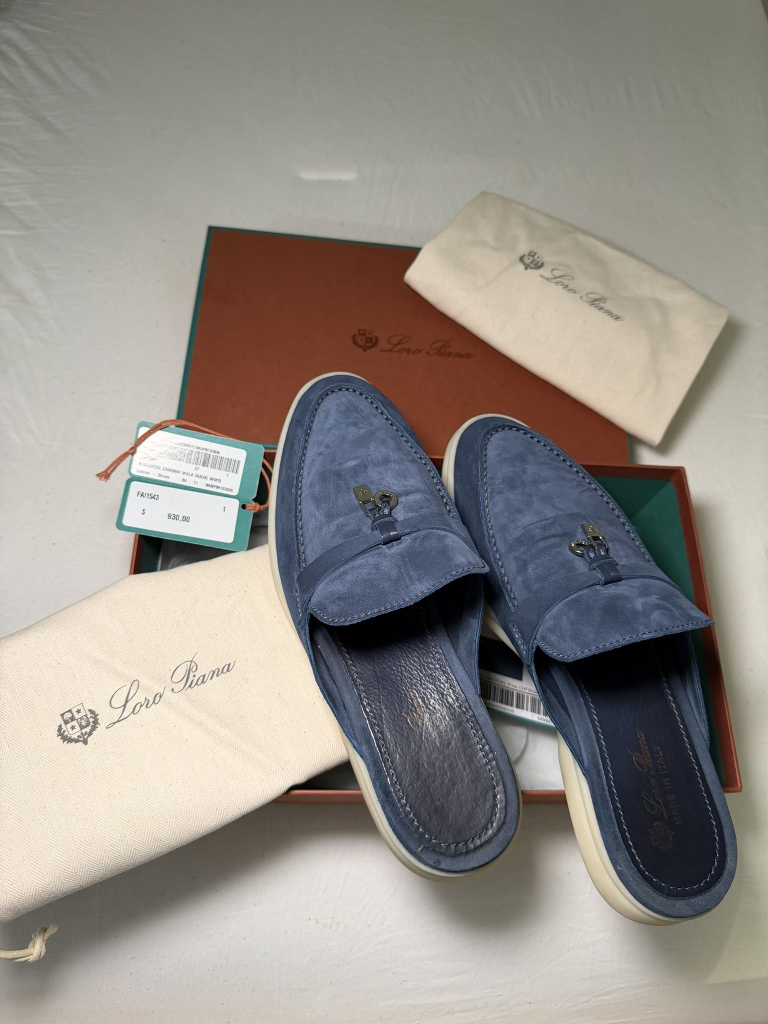 Loro Piana Babouche Charms Walk Suede- Cloud Sky Size 6 Worn Twice $600