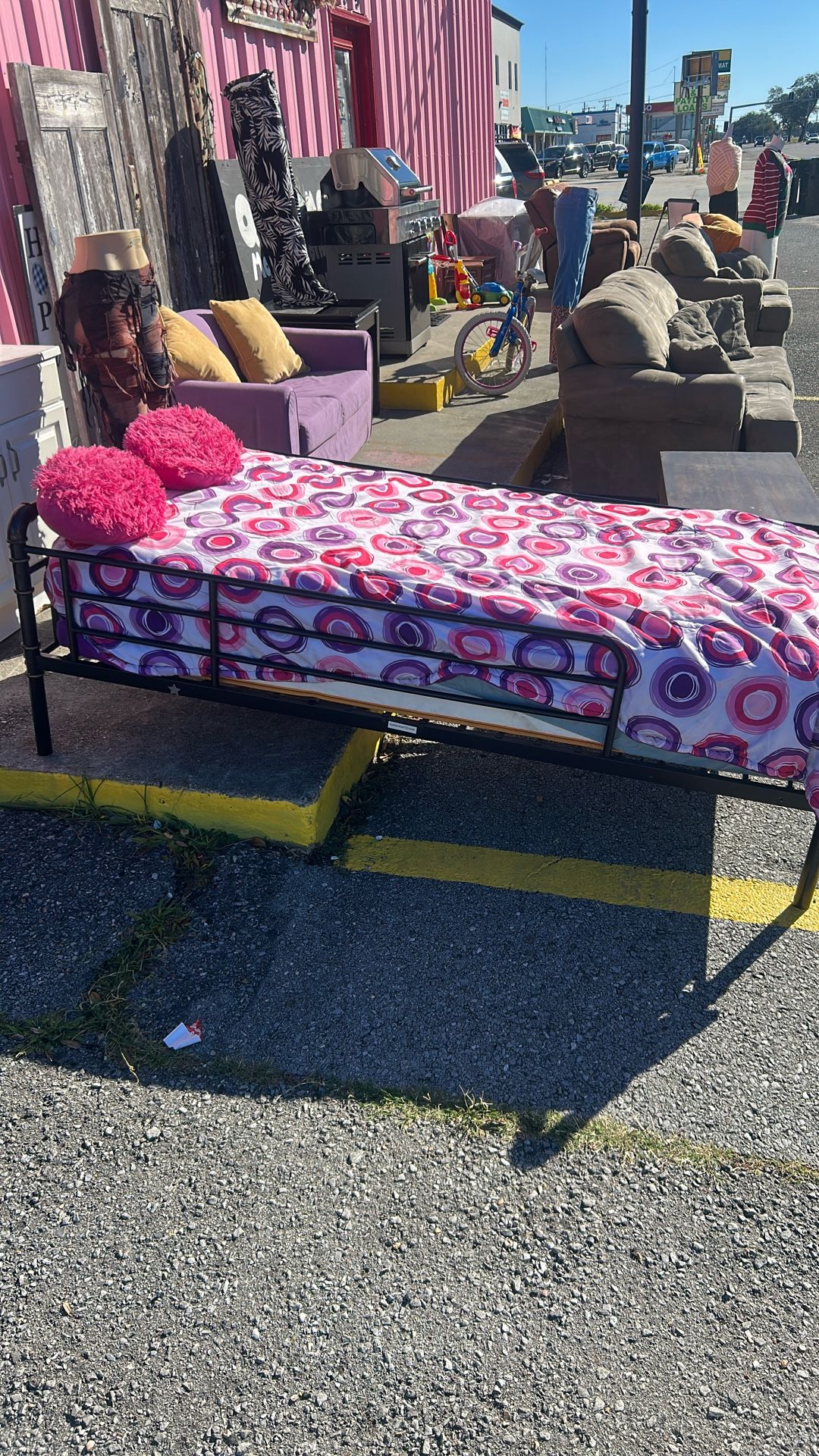 Twin Size Metal Bed With Mattress, Small Dresser,