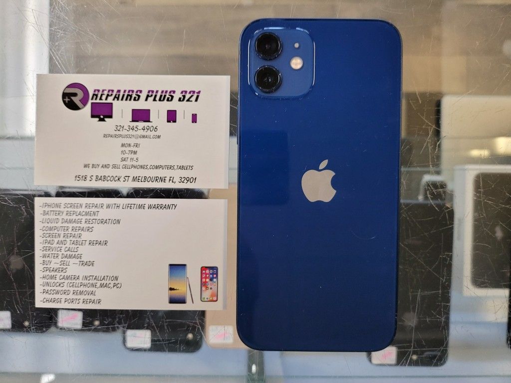 We have an unlocked Blue iPhone 12 64gb for sale! It comes with a 60 Day Warranty! Charger included! Ask about our new 90 Day Same As Cash Finance Option! No Credit Check Needed! Low Down Payment! Come Visit Repairs Plus 321! We have many other iPhones, Samsung, Macbooks, Apple Watches, Gaming & VR Consoles for sale!