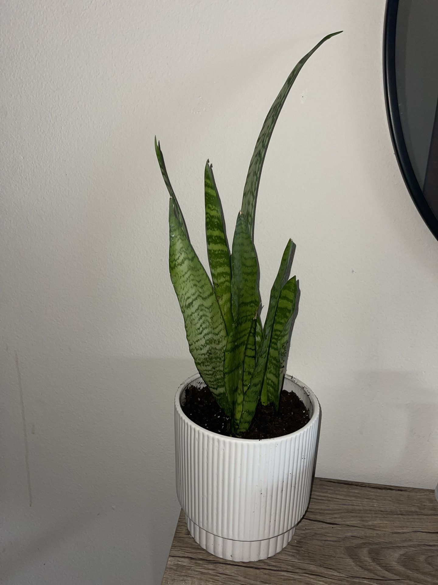 Already potted snake plant! So many health benefits to having this plant in your home. Such as filters indoor air, removes toxic pollutants, effective against allergies and also super easy to care for. Comes with the pot and already has new growth coming in.