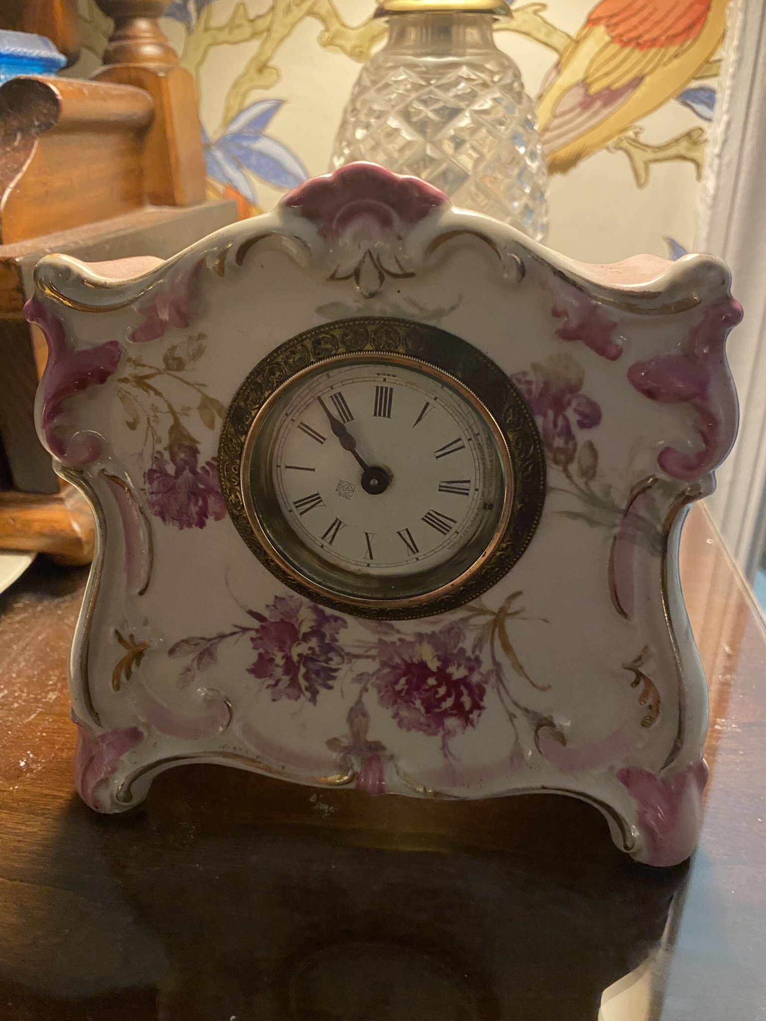 Beautiful Antique Small Wind Up Ansonia Porcelain Mantle Clock