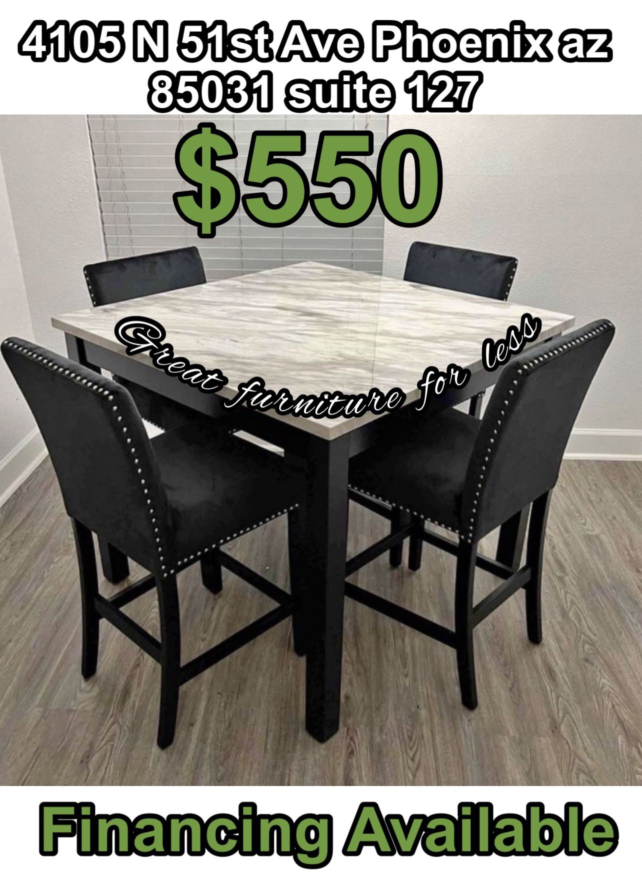 Great furniture for less 4105 N 51st Ave Phoenix az 85031 suite 127 ☎️6️⃣0️⃣2️⃣🧲4️⃣1️⃣9️⃣🧲8️⃣7️⃣5️⃣1️⃣ ☎️4️⃣8️⃣0️⃣🧲9️⃣3️⃣0️⃣🧲6️⃣0️⃣7️⃣2️⃣ ✅✅✅Financing Available ✅✅✅ ✅snap ✅acima ✅koalafi ✅American first ✅progressive ⏰store hours 10:00 am to 8:00 pm⏰ ✅bed frames ✅bedroom sets ✅bunk beds ✅dining table sets ✅sofa and Loveseat ✅lamps ✅tv stands ✅chest ✅sectional ✅impressions vanity ✅impressions chairs ✅impressions tall mirror ✅sofa beds ✅recliners ✅We accept cash 💵 cards 💳 zelle ✅ ✅Delivery 🚚 and installation 🛠️ is extra charge 💵 ✅