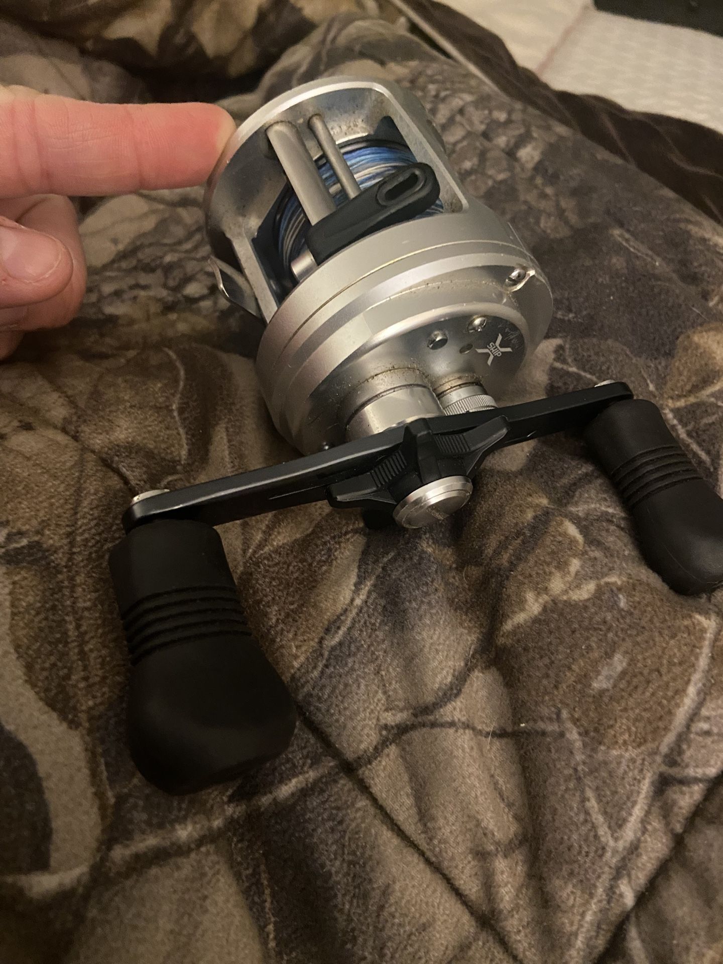 Shimano Calcutta reel 401D X ship LH crank Brand new blue camo spiderwhire 50LB line