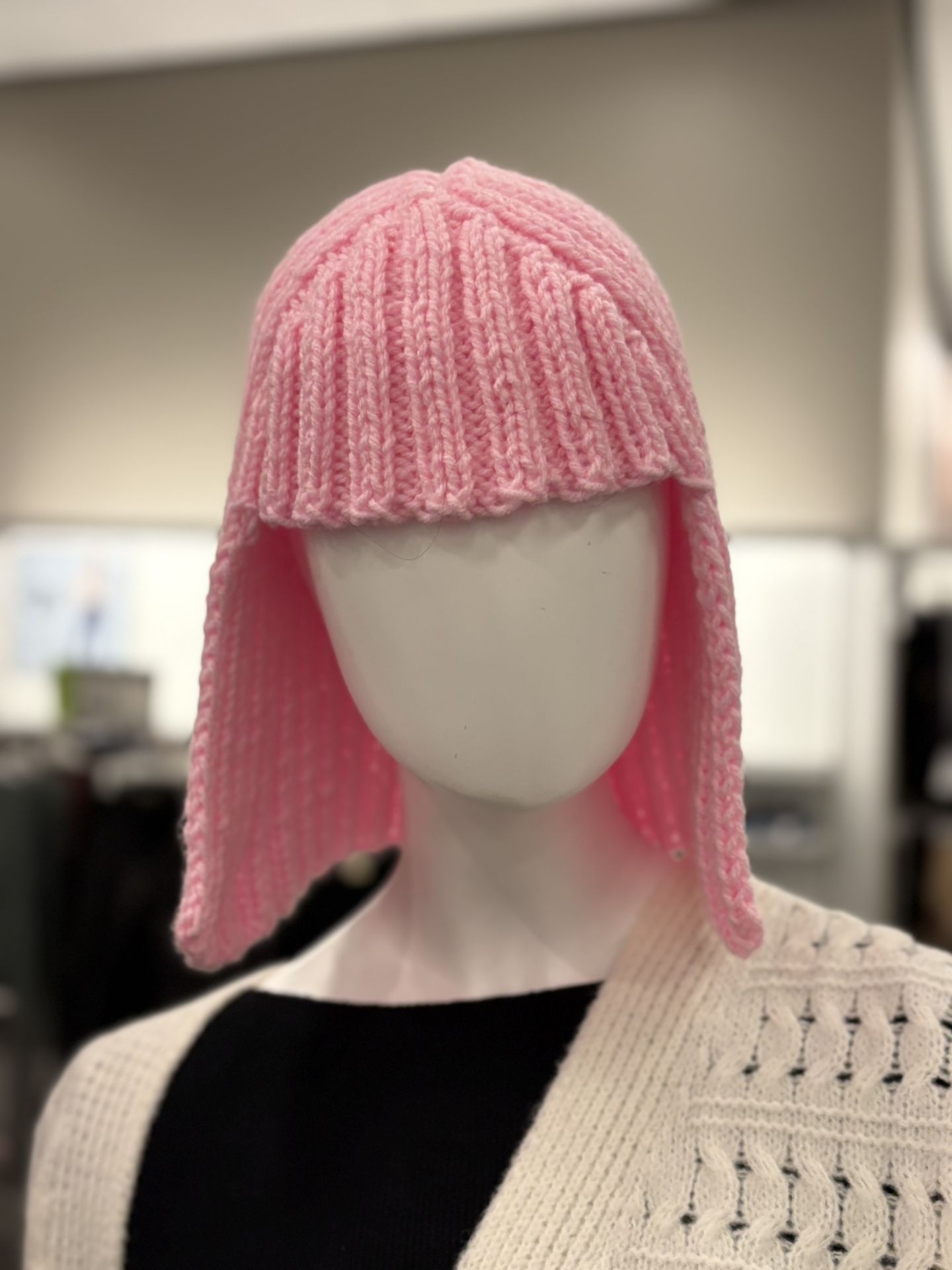 💗 Pink Knit Hat Hair Wig — Cozy, Playful & Totally Unique