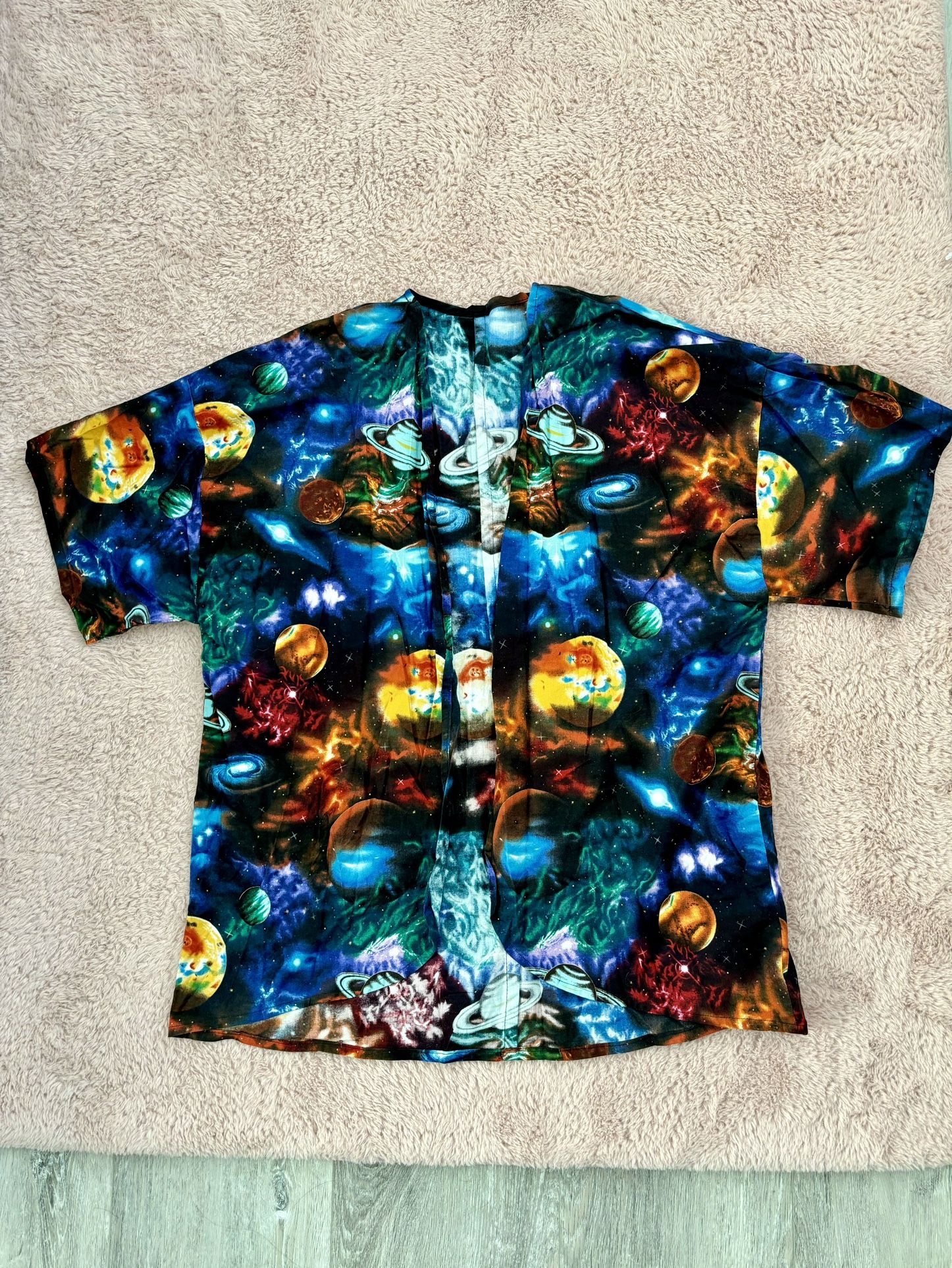 Handmade cardigan with vibrant and colorful universe design! It’s in great condition with no flaws or defects. It’s a cardigan and does not have any buttons. It’s a men’s size large. ——All of my listings are BUY ONE GET ONE FREE! Just message me and ask me to bundle as many items as you like and I’ll adjust the price!——-