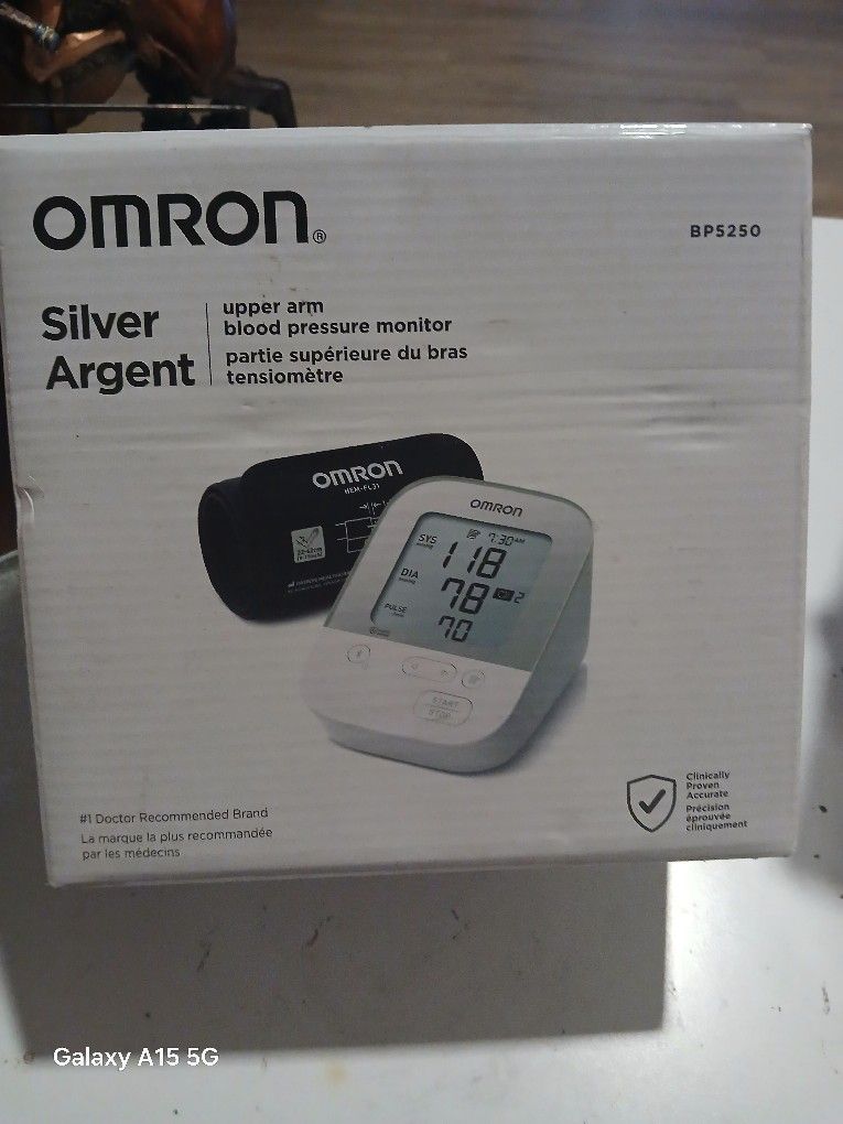 Omron BLOOD PRESSURE MONITOR SILVER AGENT # BP5250 BRAND NEW IN BOX NEVER USED! ASKING $60 OR BEST OFFER. CASH ONLY! NO TRADES NO APPS. PRICE IS NEGOTIABLE, CASH IS KING.